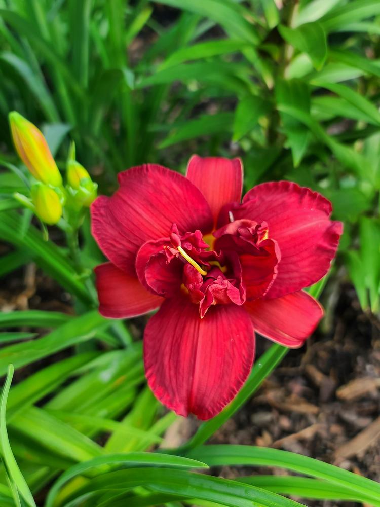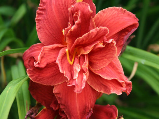 Лилейник Double Firecracker (Дабл Файеркрекер) — це справжній вибух кольору в саду. Назва, що перекладається як «Подвійна петарда», повністю виправдана: сорт має неймовірно яскравий вогненно-червоний колір та махрову форму квітки.