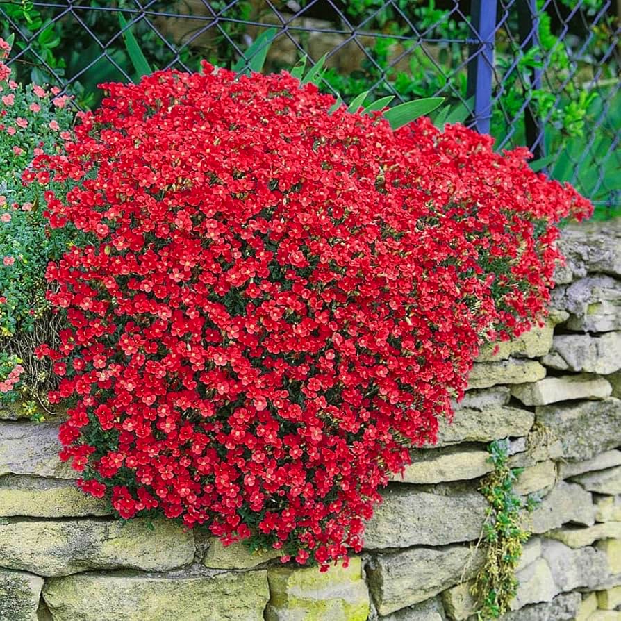 Обрієта гібридна Каскад Ред — багаторічна ґрунтопокривна рослина. Її пагони розділені на 2 види: вегетативні стеляться по землі, а генеративні, у вигляді бічних відростків, піднімаються до неба. Висота обрієти Каскад зазвичай не перевищує 10-15 см, але завширшки вона може розростатися до 40-60 см (іноді до 80 см). В результаті дуже швидко утворюється щільний «зелений килим» або довгастий напівчагарник. По всій довжині пагонів розташовуються дрібні опушені листочки. Вони мають овальну або обернено-яйцеподібну форму і кріпляться до стебел короткими черешками. Краї листя бувають цілісним або зубчастим. Через густе опушення рослинність набуває сизо-зеленого відтінку. Навіть під снігом обрієта зберігає колір листя. Особливо декоративна обрієта під час рясного цвітіння. З середини травня, над щільними, сланкими «подушками» швидко утворюються численні, маленькі квіточки, до 1 сантиметра в діаметрі. Вони розташовуються поодиноко або збираються в пухкі кисті. Віночок складається з чотирьох відігнутих пелюсток, які зростаються у вузьку трубку. З трубки виглядають жовті пильовики і зав'язь. Зацвітає обрієта на другий рік. Цвітіння продовжується 35-50 днів. Після запилення зав'язуються плоди – невеликі здуті стручки. У них знаходиться дрібне світло-коричневе насіння, сплющене з боків.