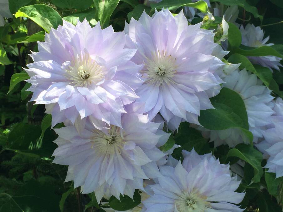 Через свій пастельний колір цей клематис ідеально виглядає на тлі темних стін або поряд з темно-зеленими хвойними рослинами. Він є чудовим партнером для троянд насичених кольорів (пурпурових або темно-рожевих).