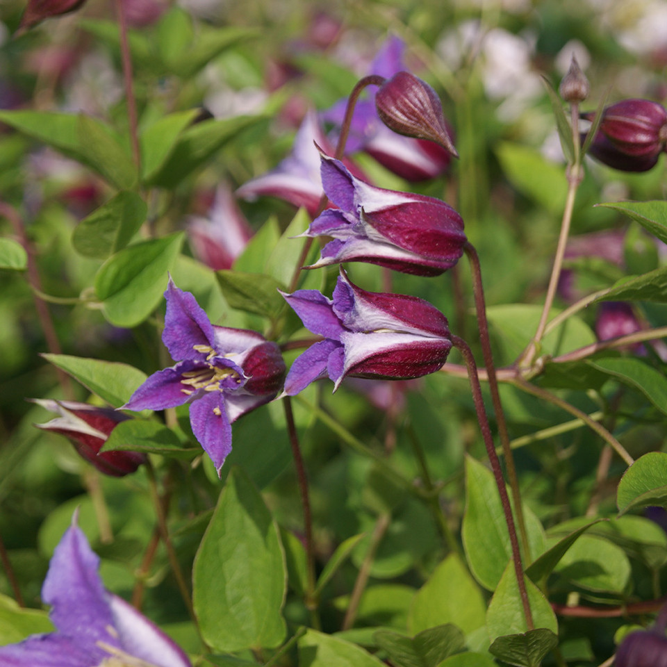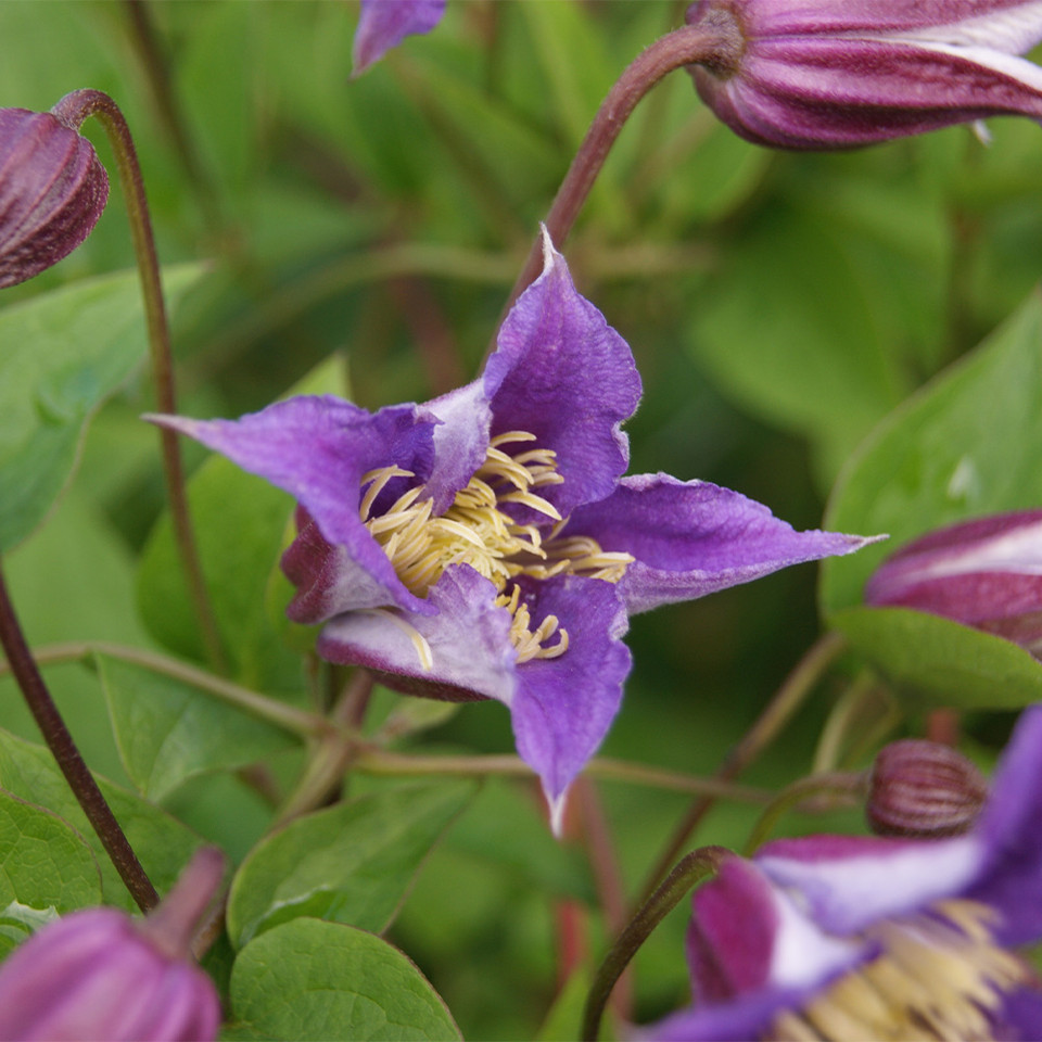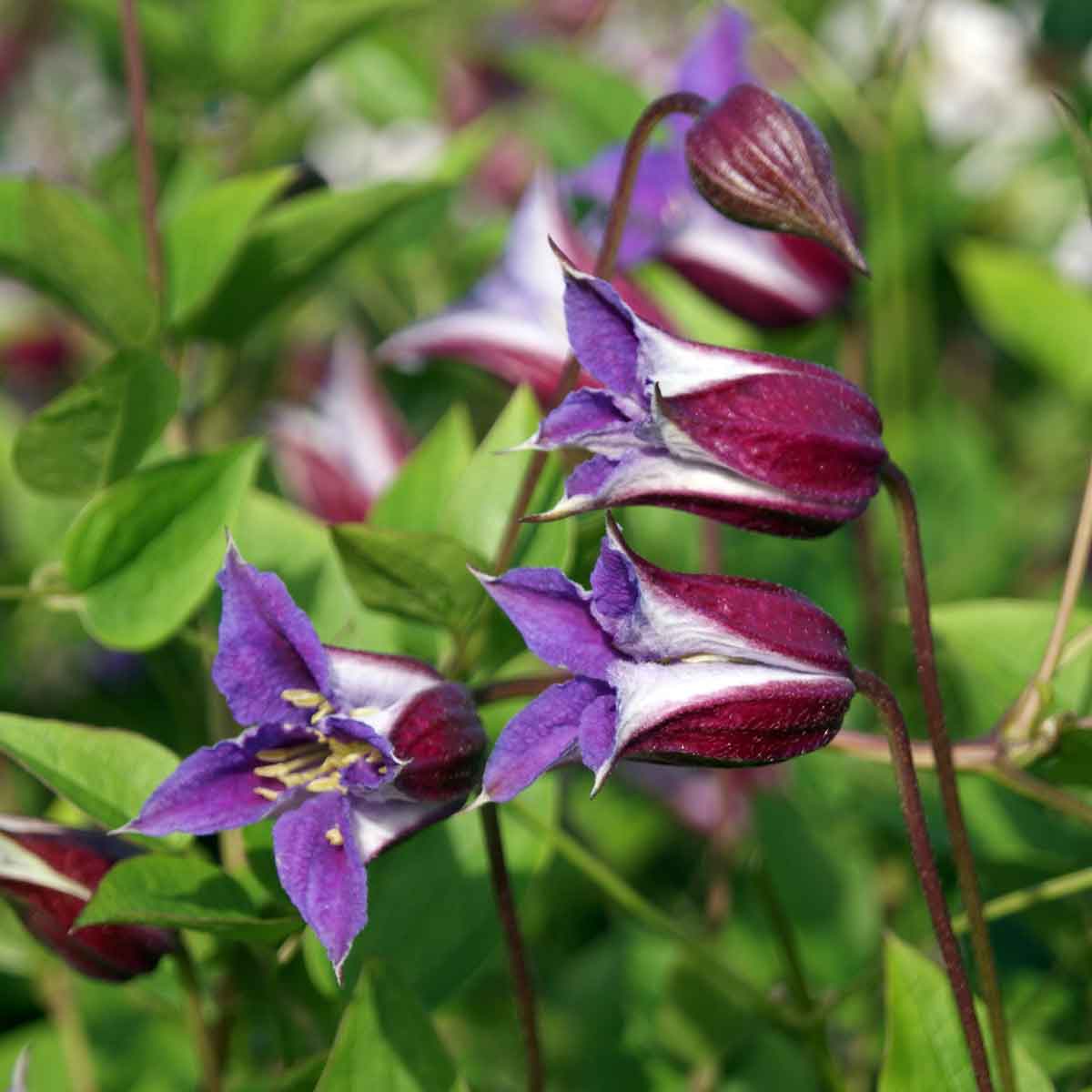Сорт Prince William кардинально відрізняється від класичних великоквіткових клематисів своєю формою та забарвленням: