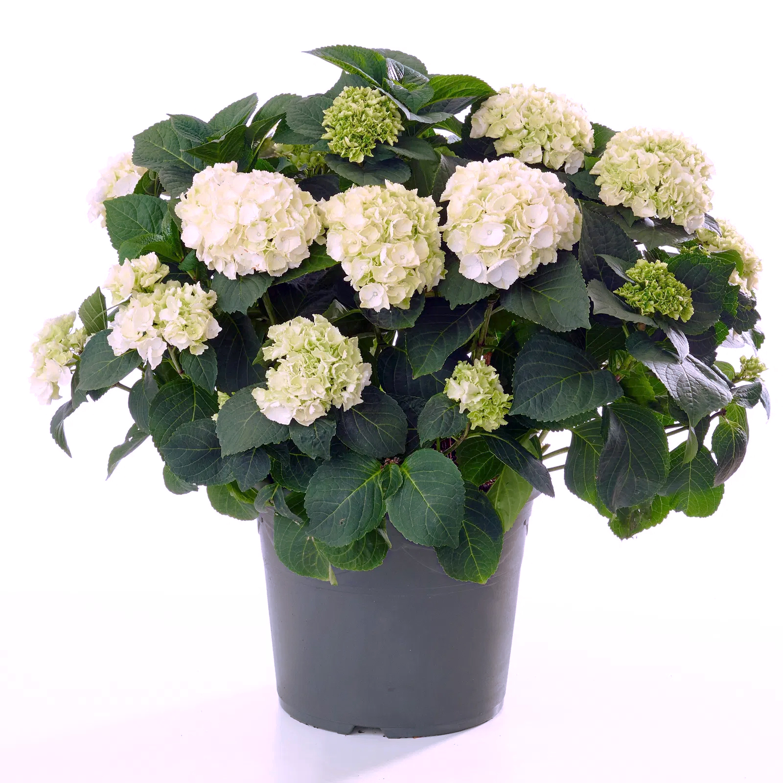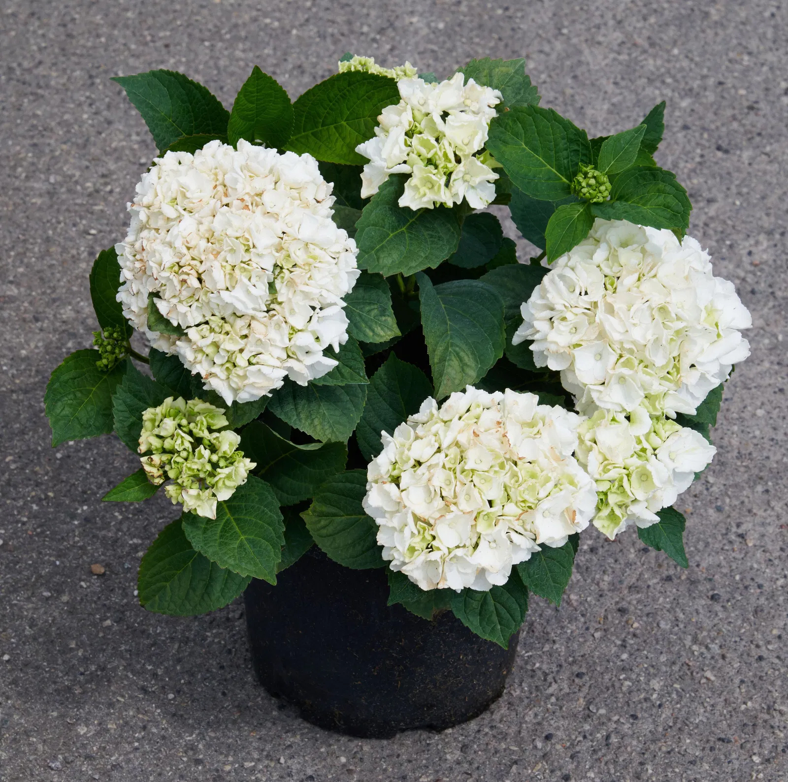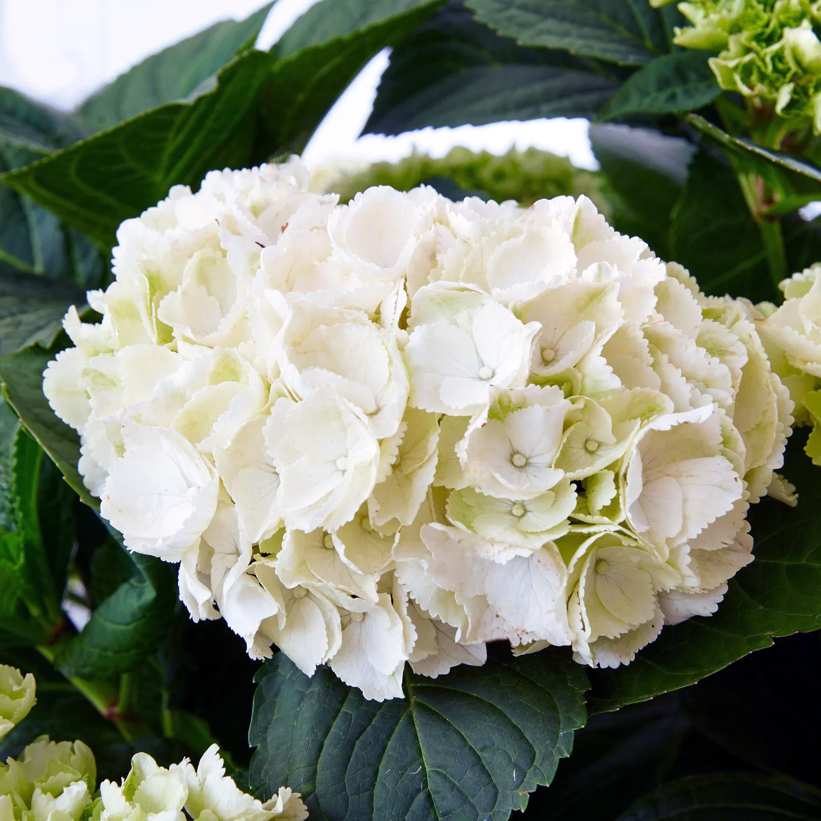 Гортензія великолистна Айс Гьорл — це ніжний і дуже елегантний сорт, який привертає увагу своїм білосніжним або майже білим забарвленням суцвіть. Назва 'Ice Girl' (Крижана Дівчина) чудово відображає її свіжий і витончений вигляд, нагадуючи про чисту білизну першого снігу. На відміну від багатьох крупнолистих гортензій, колір Айс Гьорл практично не залежить від кислотності ґрунту, що робить її надійним вибором для тих, хто шукає стабільно білі квіти. Цей сорт цінується за свою акуратну форму, рясне цвітіння та здатність надавати саду відчуття легкості та свіжості.