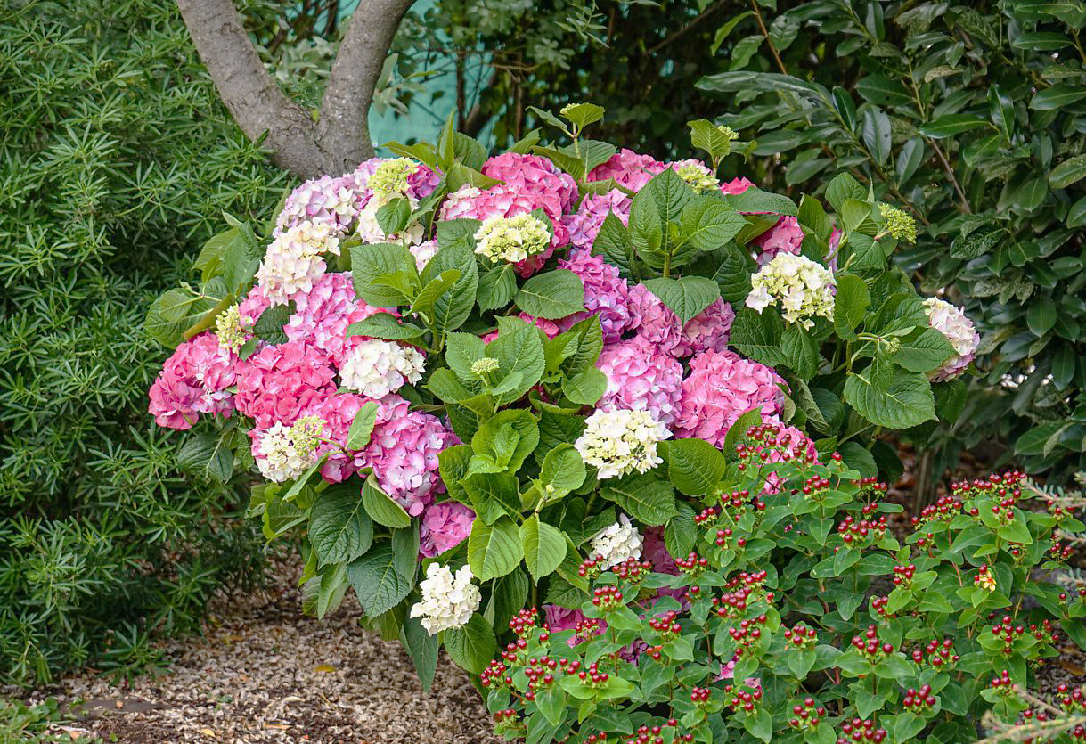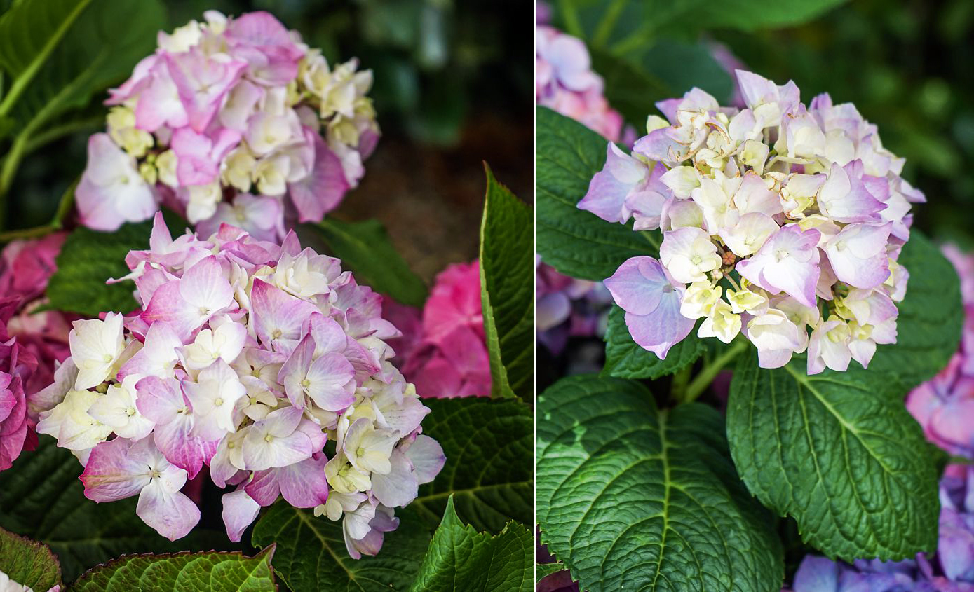 Тон фарбування квіток крупнолистих гортензій залежить від кислотності ґрунту (рН). Їх забарвлення – своєрідний лакмусовий папірець для визначення pH ґрунту. У кислому ґрунті квітки синіють (рН нижче 5,5), у слабокислому або нейтральному (pH 5,5-6,5) ґрунті квітки стають червоними, сильно підкисленим (рН вище 6,5) – їх колір може змінитися на пурпуровий або темно-фіолетовий. Рекомендується підтримувати кислотність ґрунту на рівні рН 5,2-5,7. Помічено, що молочна сироватка позитивно впливає на гортензію. Кисломолочні бактерії, потрапляючи в ґрунт, створюють сприятливе, поживне та кисле середовище для коренів гортензії.