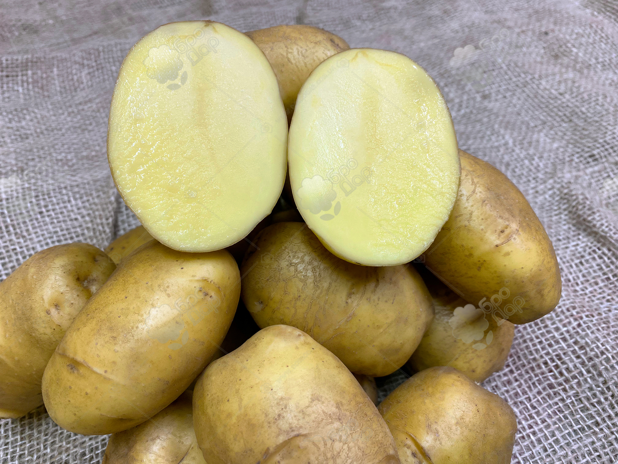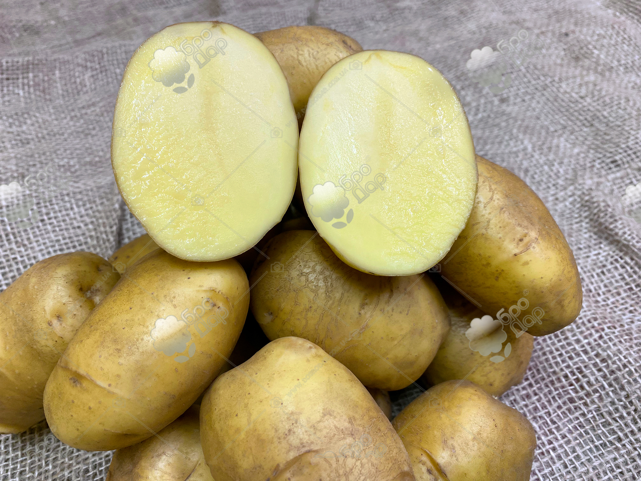 Бульби середньорозмірні та великі, видовжено-овальної форми, вирівняні за розміром, вагою 80-120 грамів. Шкірка тонка, з гладкою поверхнею, забарвлена у жовтий колір. Вічка з середньою глибиною залягання. М'якоть світло-жовтого кольору. Сорт відноситься до кулінарного типу BC. М'якоть такої картоплі м'яка, середньо борошниста і злегка водяниста. Для приготування пюрешки і начинок, для запікання, також подається цілими бульбами, ідеальна картопля для смаження у фритюрі. Вміст крохмалю вищий ніж у типах А та В.