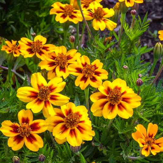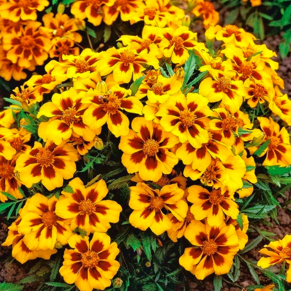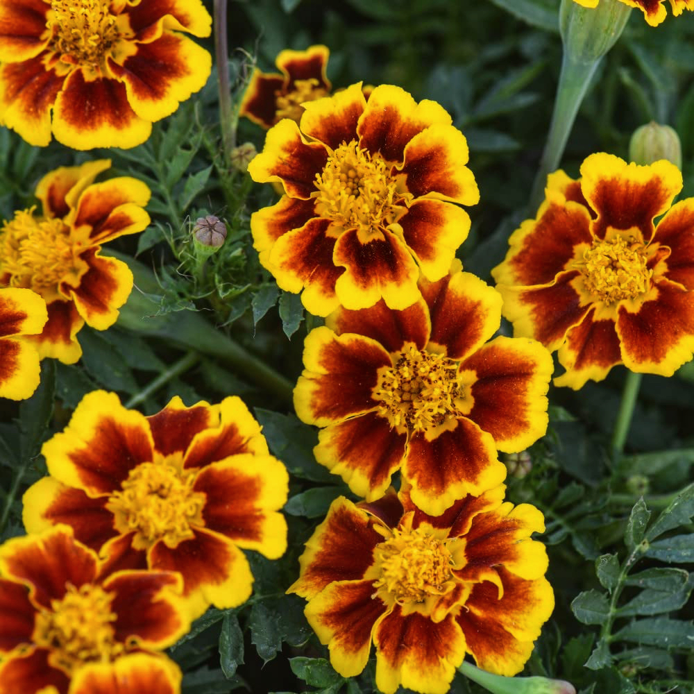 Чорнобривці 'Legion of Honour' – це надійний, яскравий та компактний однорічник, який прикрасить будь-який сонячний куточок саду або балкона своїм незвичайним і життєрадісним двоколірним цвітінням.