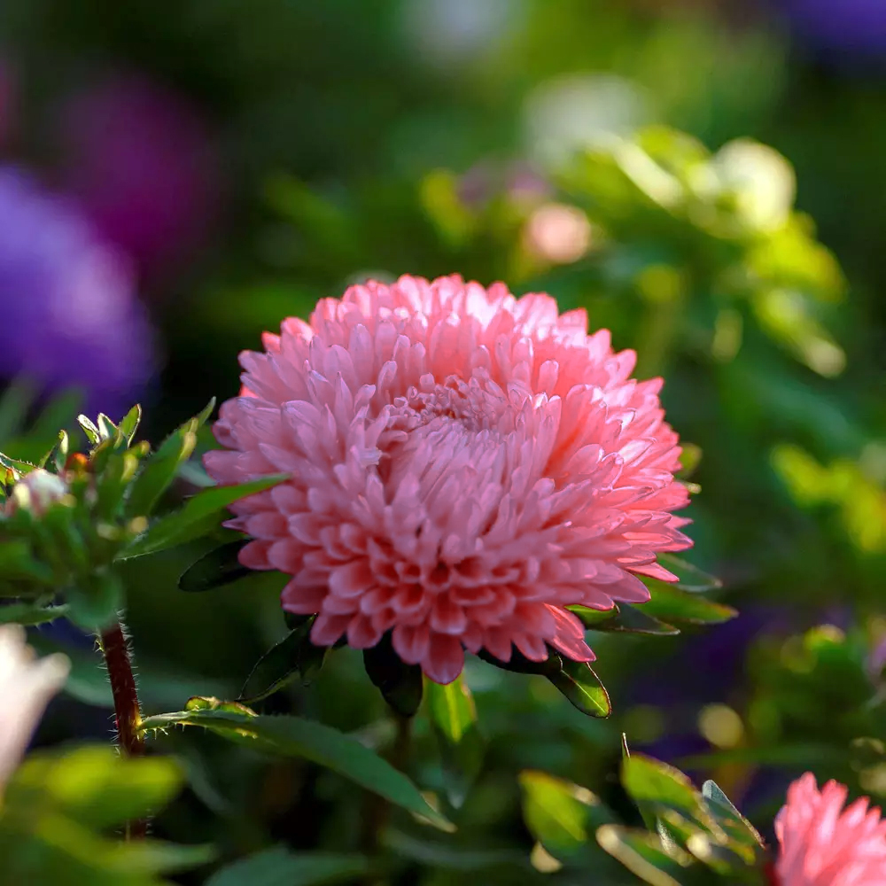 Айстра Карликовий килим лососева — оригінальна великоквіткова серія низькорослих айстр, визнана однією з кращих в світі. Кущ висотою 25 см, шириною 25 см, весь покритий великими, густомахровими, соковитими квітками, до 10 см в діаметрі, які вражають своєю ідеальною формою і соковитими фарбами. Однією з переваг цієї серії є – висока стійкість до хвороб і несприятливих умов, а також раннє (на 2 тижні раніше звичайних сортів) і тривале цвітіння. Цвіте з липня по вересень. Дуже добре підходить для вирощування в контейнерах, горщиках, для прикраси різних квітників і бордюрів. Віддає перевагу сонячному, захищеному від вітру місцю, з родючими, вапнованими, добре дренованими, але без свіжого гною ґрунтами. Рекомендується часте, обережне розпушування. Необхідне підживлення мінеральними добривами в період бутонізації.