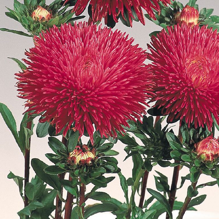 Айстра Королівський розмір кармінова — чудова крупноквіткова серія айстр для зрізу. Кущ заввишки до 100 см, широкий, розлогий, з великою кількістю міцних квітконосів. Суцвіття великі, махрові, кулястої форми, діаметром більше 12 см. Одною з численних переваг цієї серії є – висока стійкість до хвороб і несприятливих умов, а також тривале і рясне цвітіння (з липня по вересень). Для більш раннього і рясного цвітіння айстру вирощують розсадним способом. Насіння висівають в квітні, пікірують з розвитком першої пари справжніх листочків, у відкритий ґрунт розсаду висаджують з середини травня. Можливий посів насіння у відкритий ґрунт в травні-червні на глибину 1-1,5 см.