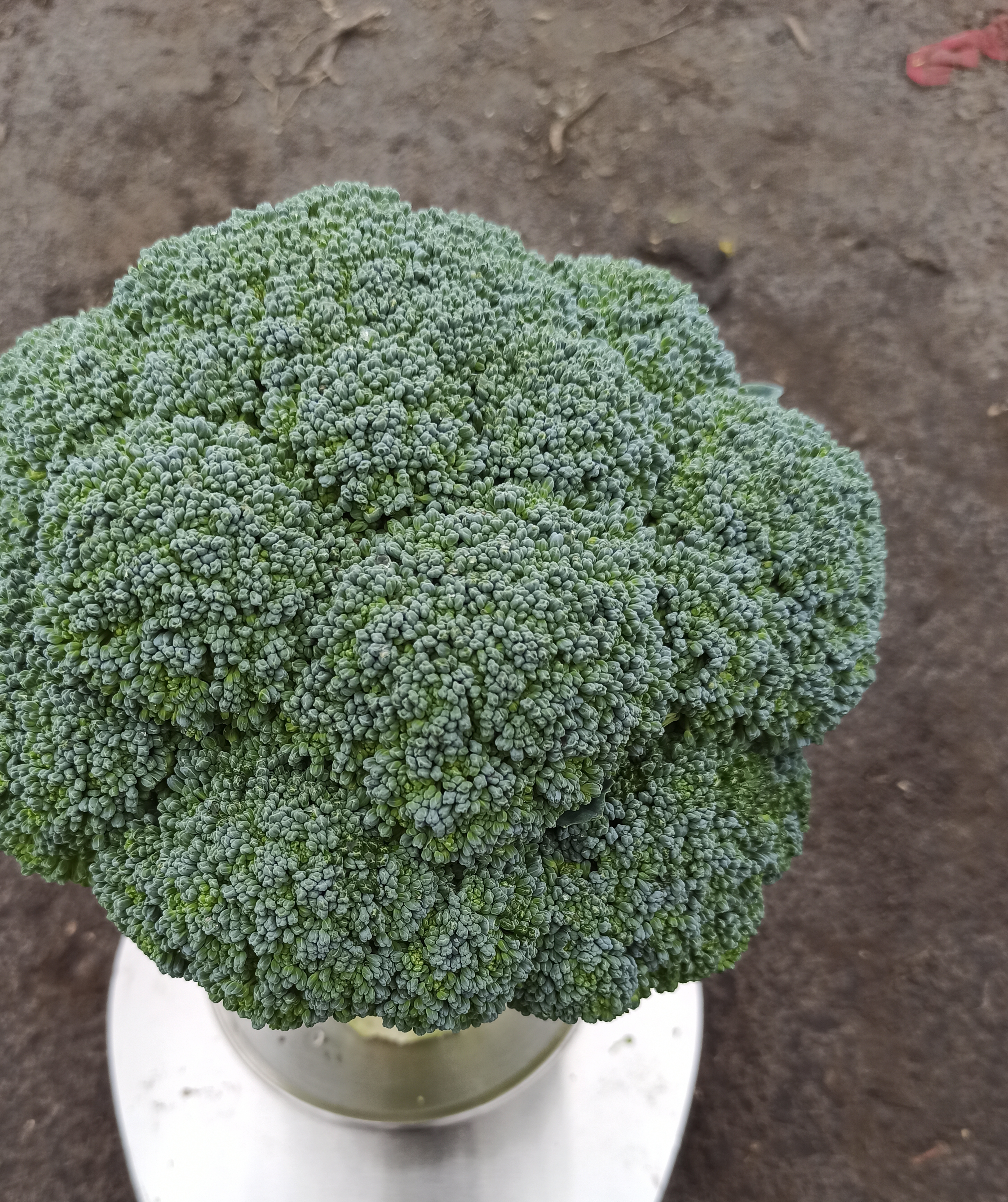 Головка дуже потужна, вагою 0,8-1,5 кг, зеленого кольору, компактна, куполоподібної форми з бутонами дуже високої якості (однорідні, зелені, маленькі).