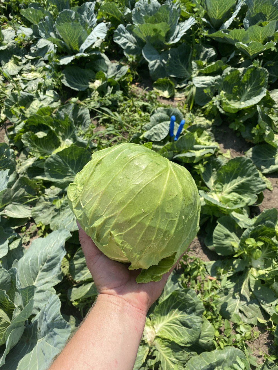 Головка компактна, округлої форми, середньою вагою 0,6-1,2 кг (можливе зрізання від 0.4-0.5 кг). Забарвлення світло-зелене, глянсове. Не має схильності до формування конічної головки.