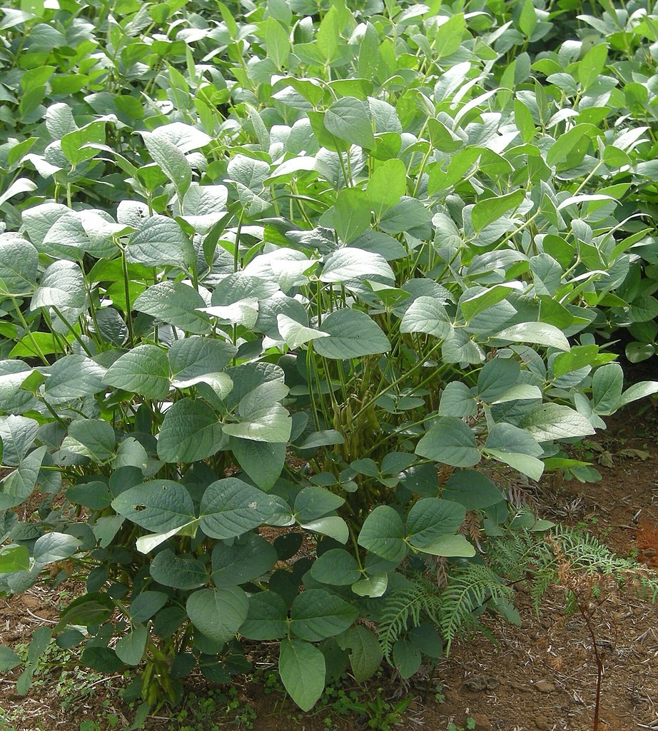 Зовні соя зачаровує своєю витонченою простотою. Стебло її прямостояче або злегка гіллясте, вкрите м'яким опушенням. Листя трійчасте, з овальними або ланцетоподібними листочками, що досягають 6-15 сантиметрів у довжину, переливаються відтінками зеленого, від яскраво-смарагдового в молодому віці до глибокого, насиченого в зрілості. Вони розташовуються спірально, немов сторінки стародавньої книги, що зберігає секрети фотосинтезу та азотофіксації – адже соя, як справжній бобовий, співпрацює з ґрунтовими бактеріями Rhizobium, збагачуючи землю азотом та сприяючи родючості. Соя має унікальну здатність засвоювати азот з атмосфери та збагачувати їм ґрунт. На коренях сої утворюються бульбочки з азотфіксуючими бактеріями Rhizobium. Це робить її ідеальним попередником для інших культур у сівозміні.