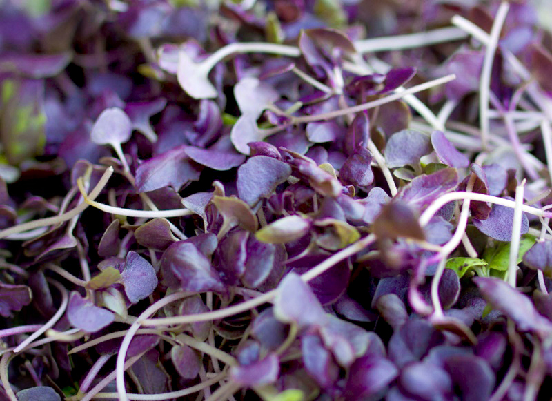 Мікрозелень – це молоді рослини у фазі першої пари справжніх листочків (зрізають стебло з першим листям над поверхнею ґрунту чи субстрату через 7-14 днів). Вирощують у ґрунті, на килимках або гідропоніці. Має насичений, виражений смак, що нагадує дорослу рослину (наприклад, шпинат, редис, соняшник, броколі).