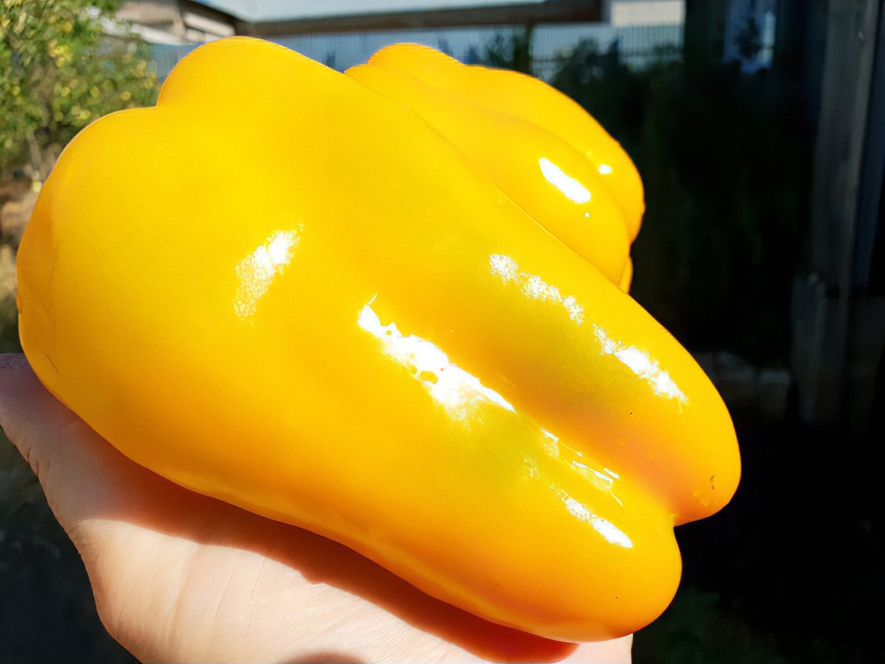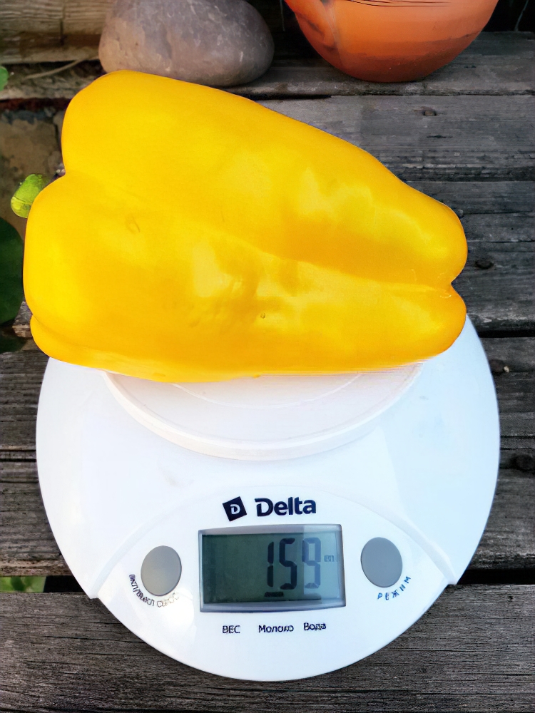 Перець солодкий Біг мама жовтий — сорт раннього терміну дозрівання. Новинка. Рекомендований для вирощування у відкритому ґрунті та під плівковими укриттями. Кущ напіврозлогий, виростає висотою 60-70 см, в теплиці – до 100 см. Плоди великі, кубоподібні, досягають у вазі до 250 грамів, з м'ясистими та соковитими стінками (6-8 мм), гладкі, дуже привабливі, глянсові, у стадії біологічної зрілості пофарбовані в яскраво-жовтий колір, мають відмінні смакові якості. Сорт ідеальний для використання у свіжому вигляді, у кулінарії та для консервування. За умови дотримання агротехеніки з одного квадратного метру вдається зібрати понад 7 кілограмів урожаю. Відмічається стійкость сорту до основних захворювань перцю.