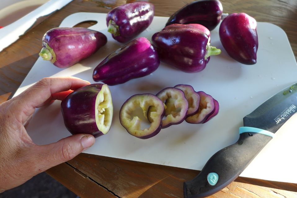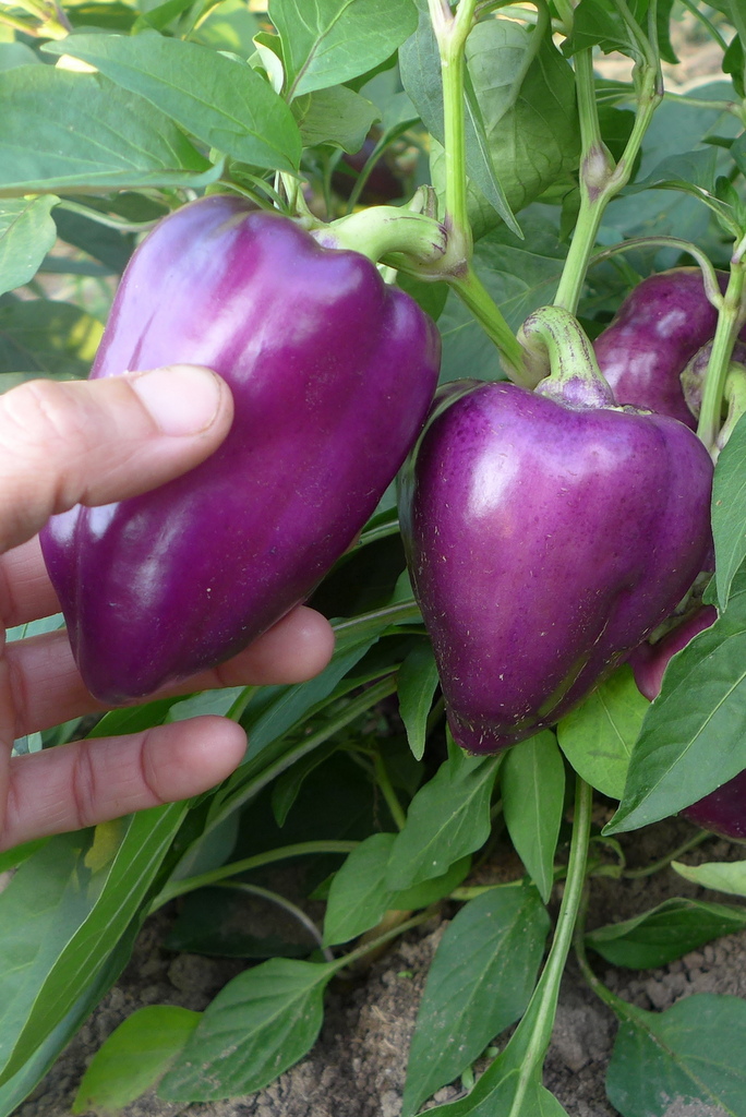 Плоди кубовидно-призмовидної форми, злегка подовжені, налічують 3-4 камери, з гладкою глянсовою поверхнею. Виростають 9-11 см завдовжки, 7-9 см завширшки і важать 100-140 грамів (при гарному догляді 160-200 грамів), товщина стінки становить 6-8 мм. Плоди починають вживати в їжу після досягнення ними стадії технічної стиглості, коли вони забарвлюються в незвичайний темно-фіолетовий колір, при досягненні біологічної зрілості покривна шкірка стає інтенсивного фіолетово-червоного кольору. М'якоть щільна, хрумка, соковита, солодка, без гіркоти, з легким фруктовим ароматом, вміст сухих речовин становить 7-8 %. Цей перець відмінно підходить для свіжого споживання (особливо в салатах завдяки незвичайному кольору), фарширування, грилю, запікання та декоративних страв. Плоди вирівняні, не схильні до розтріскування після дощів, легко відокремлюються від плодоніжки. Транспортабельність та лежкість відмічаються хороші: при +8…+10°C зберігаються 3-4 тижні без втрати тургору та яскравого кольору. Урожайність у відкритому ґрунті становить 3-4 кг із куща, у захищеному – до 6-8 кг.