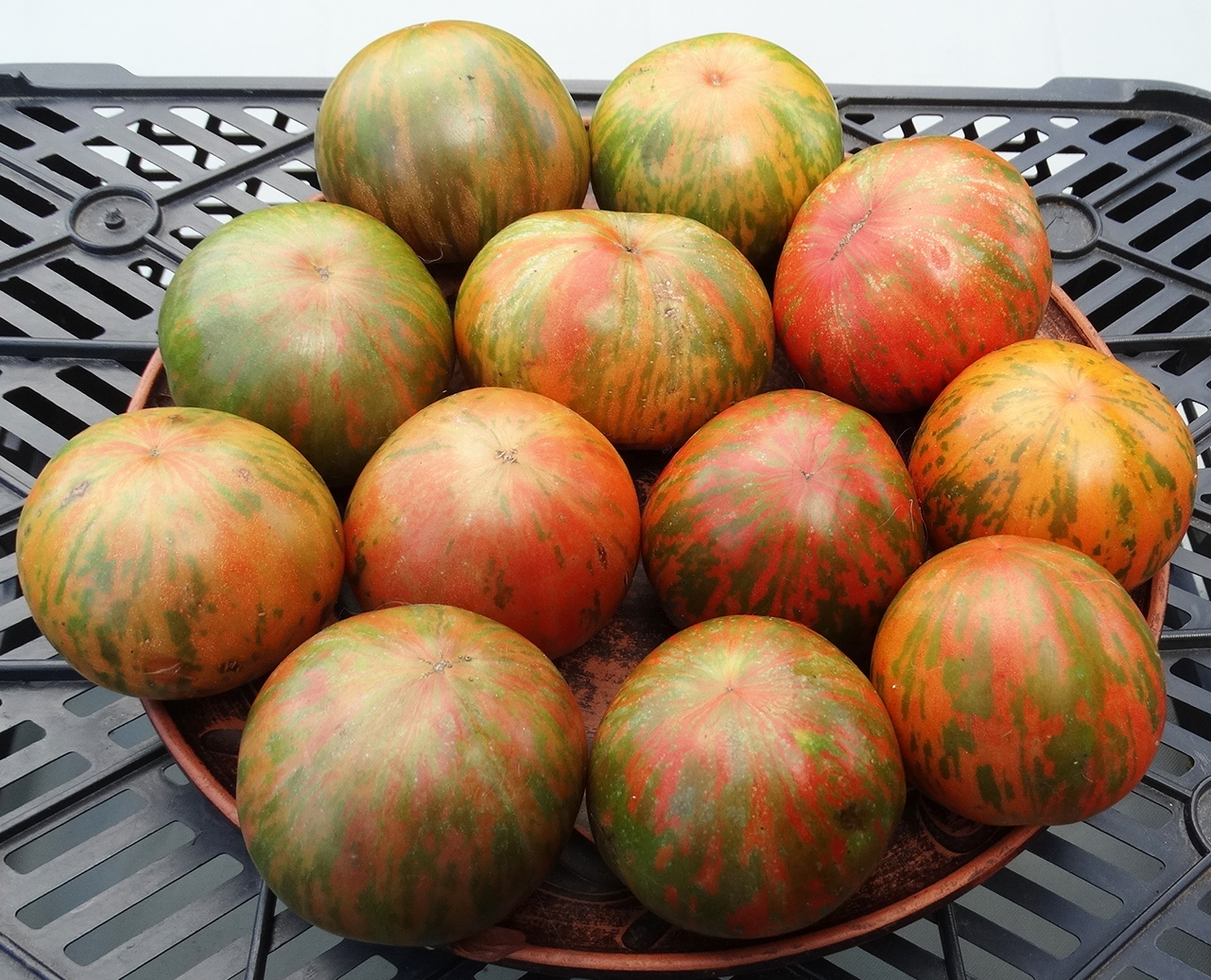 Стають в повній стиглості яскраво зеленими, з червоними узорами, і лишаються міцними, як яблука.