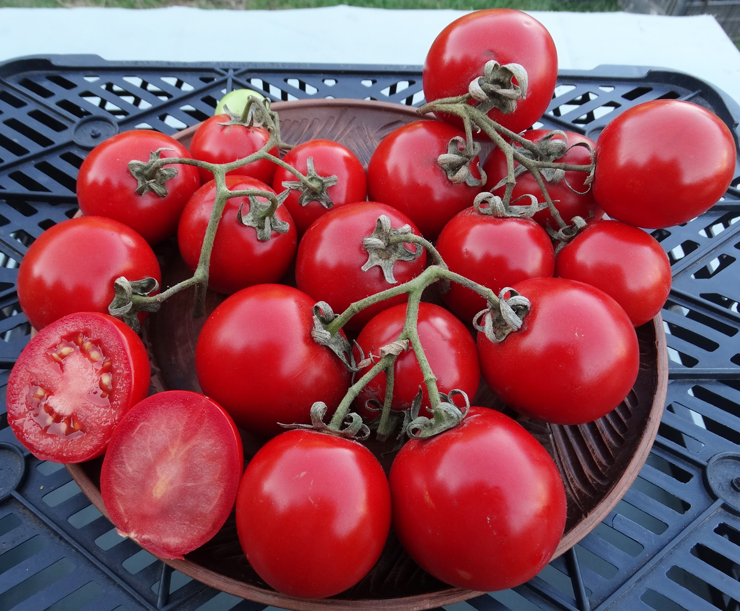 Сорт який в продовж трьох років є моїм улюбленцем. Він потребує мінімум праці, такі проблеми як пасинкування пагонів йому зовсім не потрібні, тому що він компактний, висотою близько 1,2 м, але пагонів мало, він полуштамбовий і все це усипане плодовими кистями.