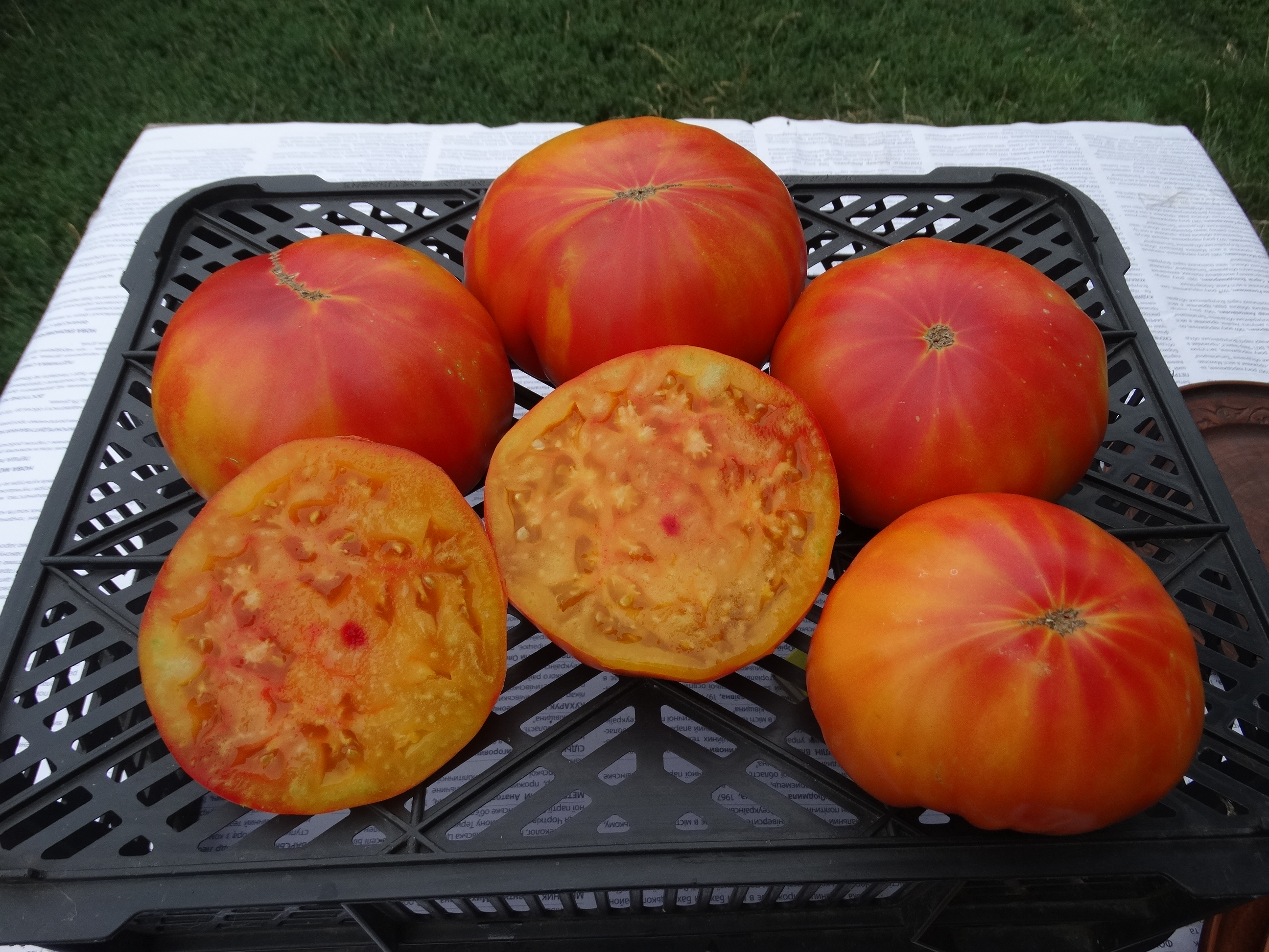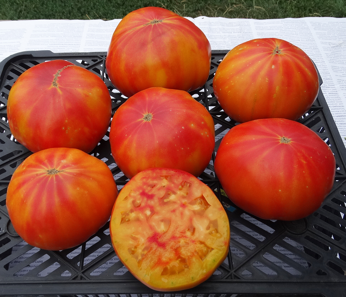 Плоди сильно окрашені рожевим на золотистому фоні, міцні, не тріскаються, м’ясисті, в міру соковиті, дуже смачні. Середньою вагою 300-600 г.