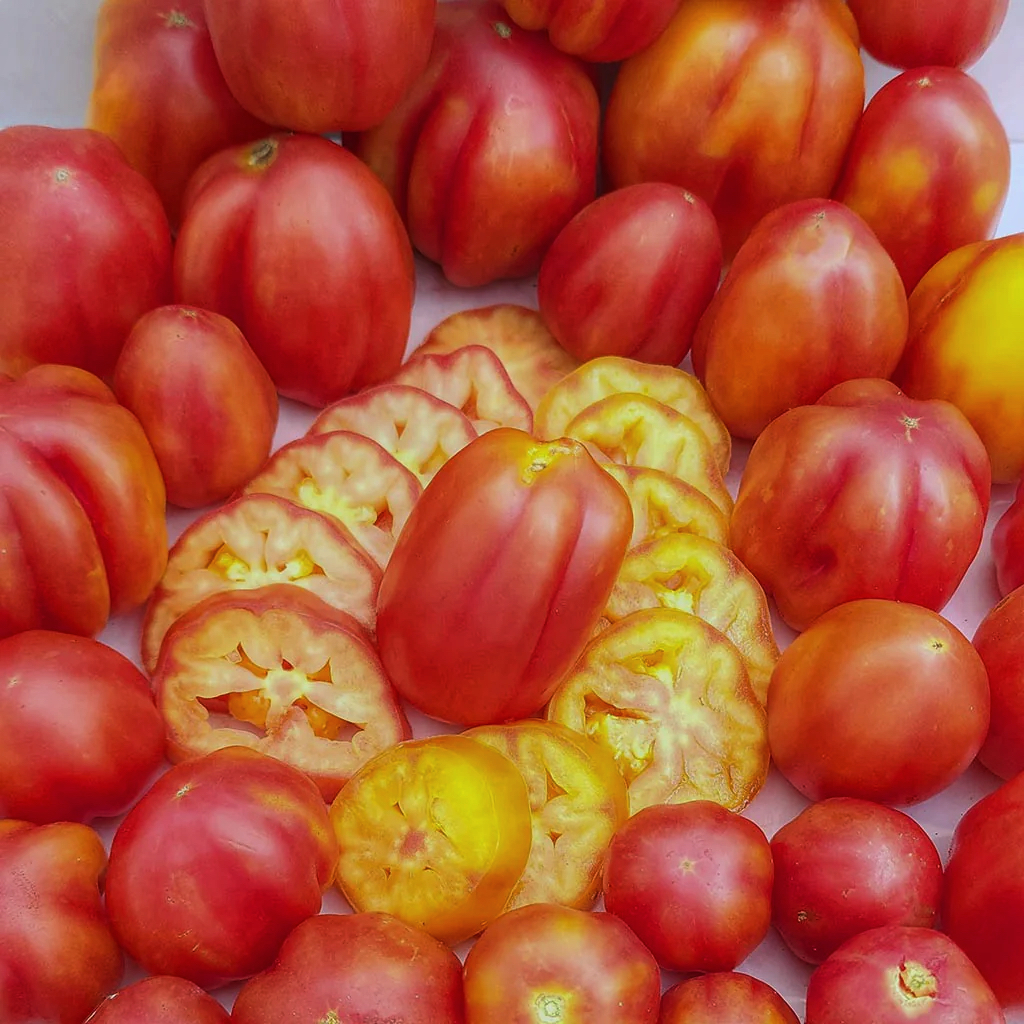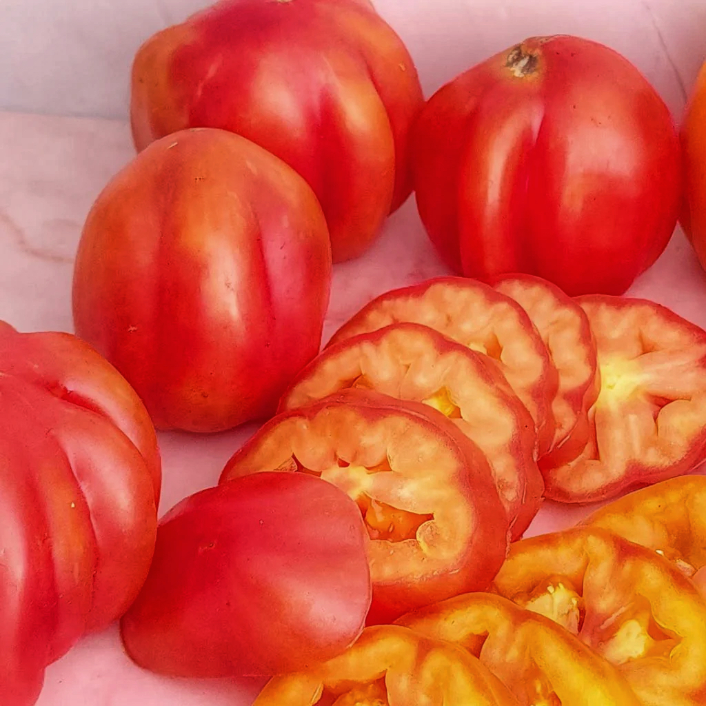 Томат California Tulip (Каліфорнійський Тюльпан) — це рідкісний, надзвичайно вишуканий сорт, який отримав свою назву завдяки унікальній формі плодів, що нагадують закриті бутони тюльпанів. Цей сорт належить до групи ребристих томатів (типу Costoluto) і є справжнім делікатесом для поціновувачів гарної кулінарної подачі.