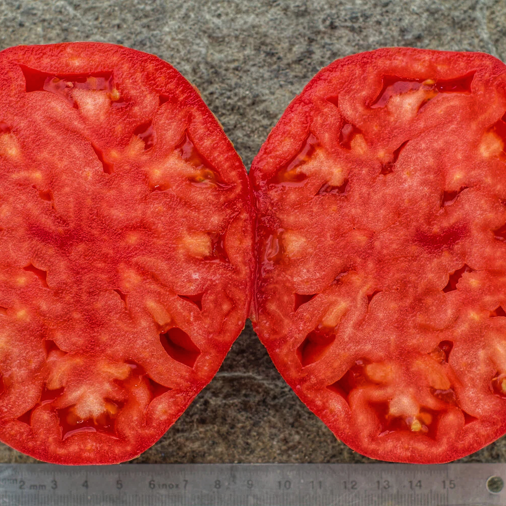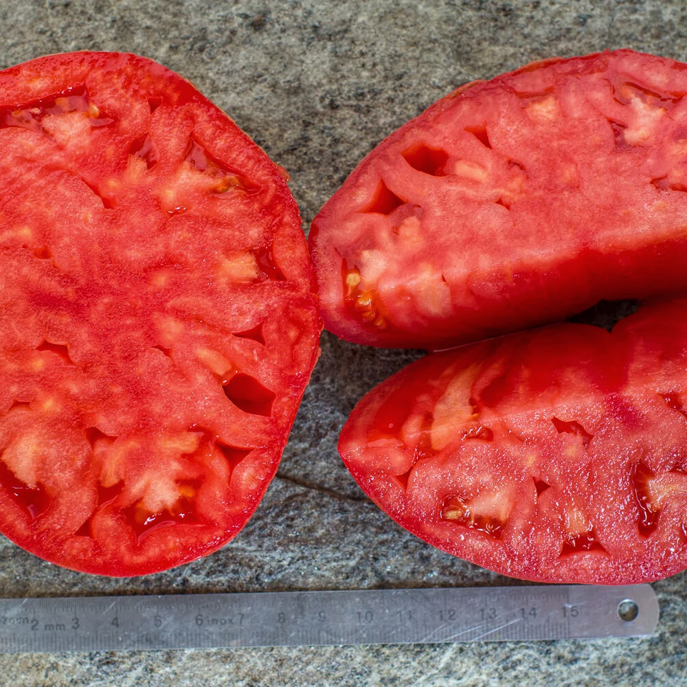 М'якуш: М'ясистий, щільний (тип "біф"), містить дуже мало насіння та соку. На розрізі томат виглядає суцільною "цукровою" масою.
