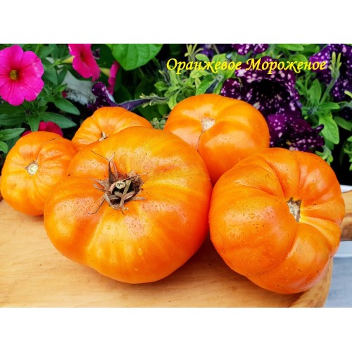 Сорт томату Orange Ice Cream (Помаранчеве Морозиво) — це вишуканий десертний сорт, який цінується садівниками за незвичайну форму, сонячний колір та неймовірно ніжну текстуру м'якоті. Він належить до групи великоплідних вершків або серцеподібних томатів.