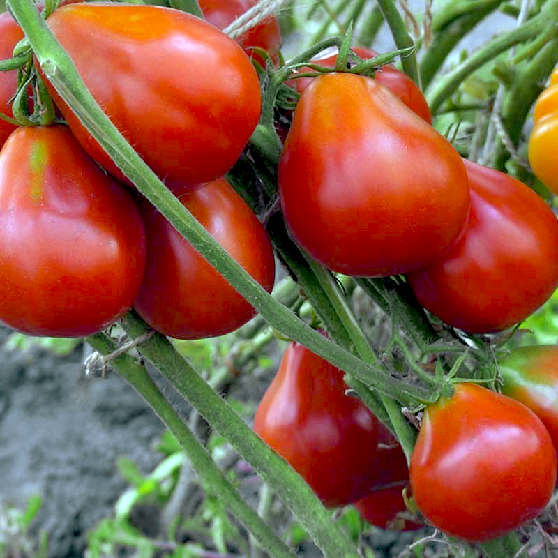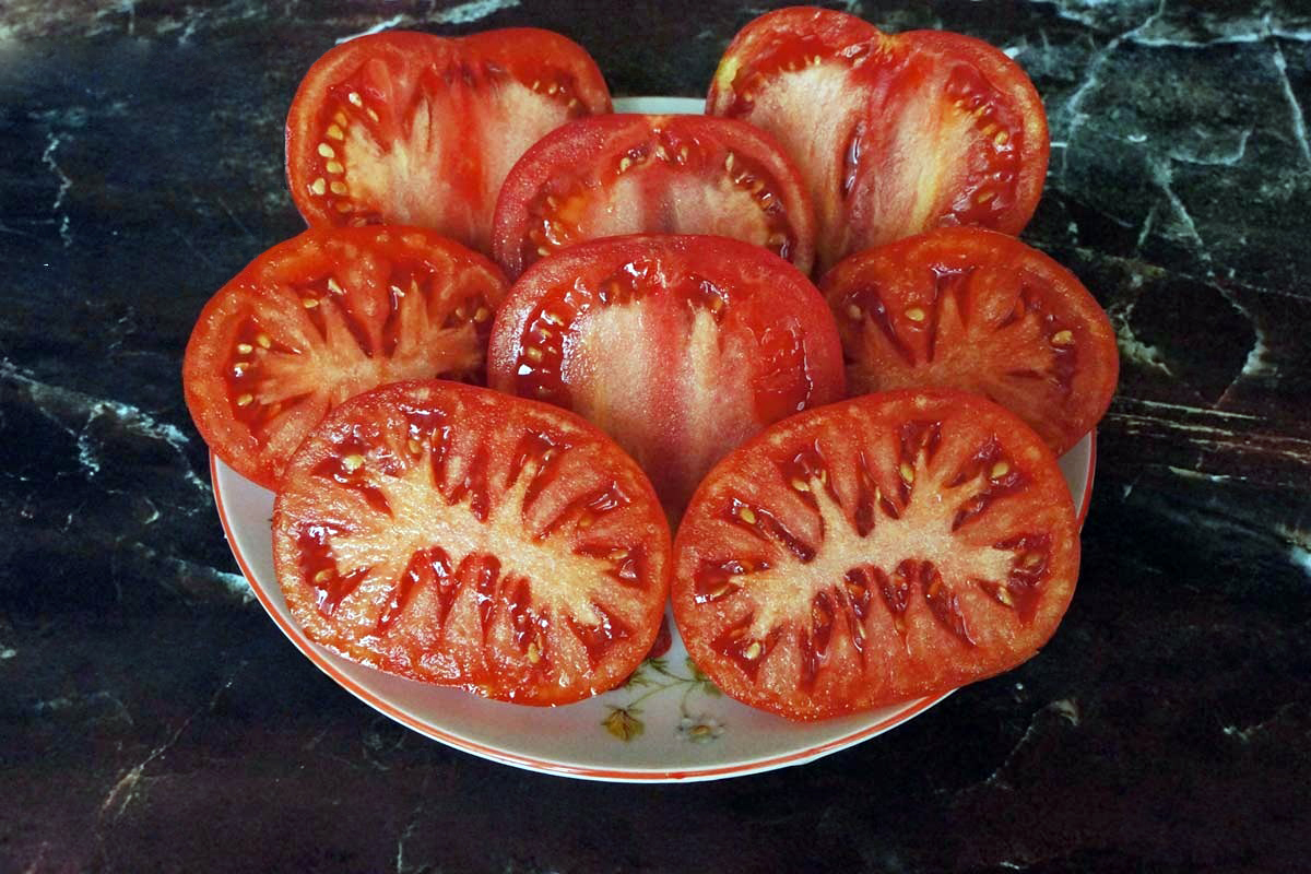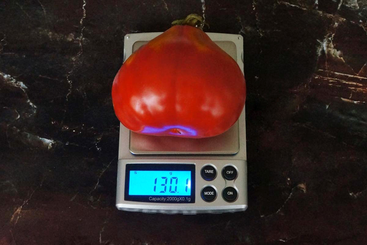Томат Трюфель червоний — сорт середньораннього терміну дозрівання. Підходить для вирощування в усіх видах теплиць і відкритому ґрунті. У середній смузі сорт непогано переносить відкритий ґрунт. Сорт починає дозрівати в теплиці через 100 днів від сходів, у відкритому ґрунті – через 110 днів. Кущ напівдетермінантного типу, міцний, в нормі у відкритому ґрунті виростає у висоту 100-120 сантиметрів, в захищеному – 150-180 сантиметрів. Рекомендується вести в 2-3 стебла. Плоди грушоподібної форми з невеликими повздовжніми реберцями, пофарбовані в насичений червоний колір, щільні, в міру соковиті, великі, окремий помідор досягає у вазі 120-200 грамів, смачні, з високим ступенем солодкості, ростуть кистями по 5-6 штук. Не розтріскуються на рослині, добре дозарюються і довго зберігаються. У сорту відмічається висока зав'язуваність, він володіє стабільно високою врожайністю. За умови правильної агротехніки, з 1 рослини виходить зібрати 4-4,5 кілограми добірних плодів. Універсальний у використанні сорт, підходить для смачних літніх салатів, хороший в засолюванні, ці помідори зберігають форму в консервації. Також ці помідори можна довго зберігати в свіжому вигляді. Нюанс: після різкого стрибка температури з метою уникнення вершинної гнилизни, сорт потребує додаткової підгодівлі по листю іонами кальцію. Припинити полив за 2 тижні до дозрівання, можливі тріщини. Нагадуємо, що для отримання найсмачніших і ароматних помідорів будь-якого сорту, томатам потрібен пухкий, насичений перегноєм ґрунт, помірний полив, максимум сонця і оптимальна кількість здорового листя. Для відлякування шкідників городники радять між кущів висаджувати редьку або редис.