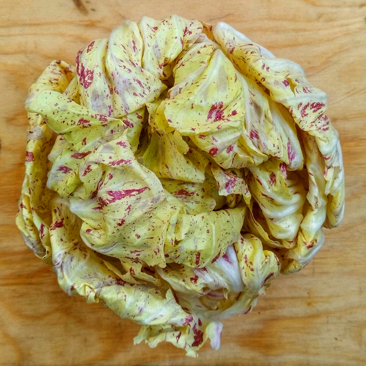 Variegata di Castelfranco — це вишуканий італійський сорт цикорію, який по праву вважається одним із найдекоративніших і найсмачніших. Його часто називають "Їстівна троянда" або "Зимова орхідея" через його форму та незвичайне забарвлення.