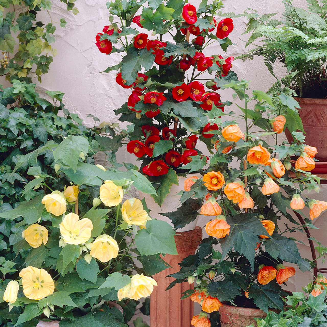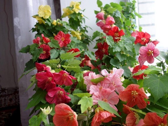 Абутилон суміш — вічнозелений декоративний чагарник висотою до 90 см, що відрізняється красою та вишуканістю. Легко розмножується, швидко росте і не вимагає складного догляду. Ідеальний для вирощування в прохолодних зимових садах, на світлих вікнах далеко від обігрівальних приладів, для оформлення терас і патіо. Має красиві різьблені великі (10 см) листя, що нагадують за формою кленові. Цвіте рясно і тривало квітками рожевого, червоного, помаранчевого і золотистого кольору у вигляді великих дзвіночків-бубонців, що з'являються в літньо-осінній період. При дотриманні всіх умов можливо цвітіння взимку. Листя абутилона, що підвищують вологість повітря, дозволяють поліпшити мікроклімат у кімнаті.