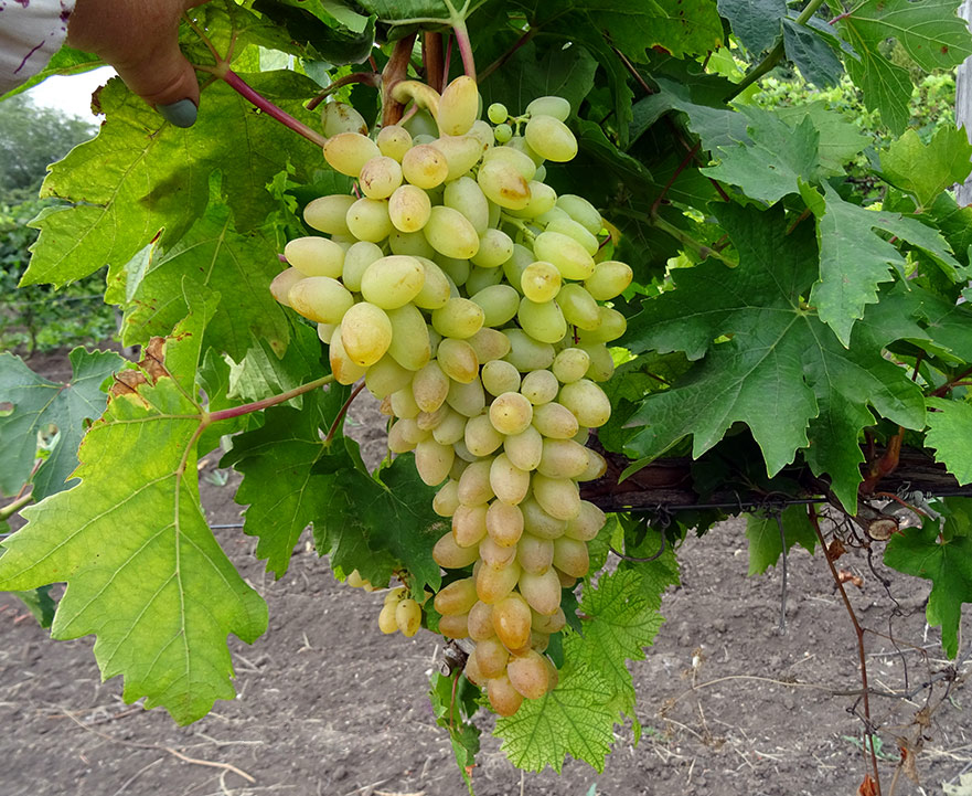 Кущі цього винограду характеризуються середньою силою росту і великою товщиною (понад 20 мм) пагонів. Дозрівання лози хороше. Грона великі, конічної або циліндричної форми, середньої щільності або пухкі, виростають вагою від 800 до 1500 г, окремі екземпляри досягають до 2 кілограмів. Пухка структура грон сприяє гарній вентиляції, що знижує ризик грибкових захворювань.