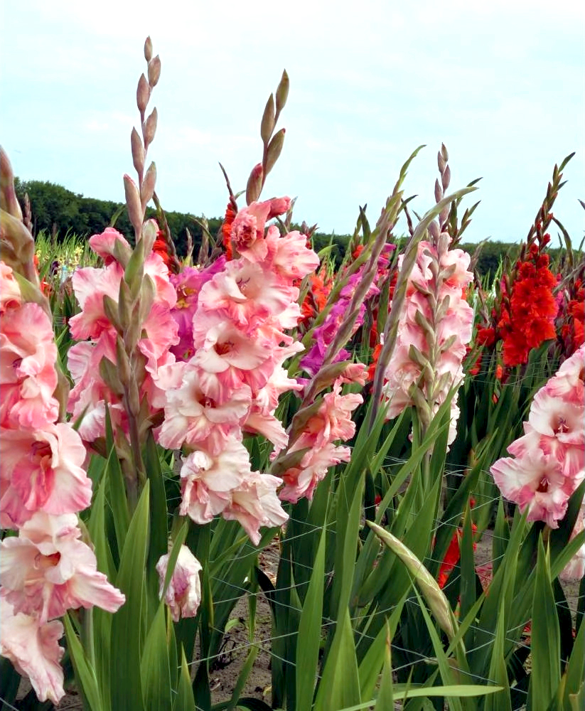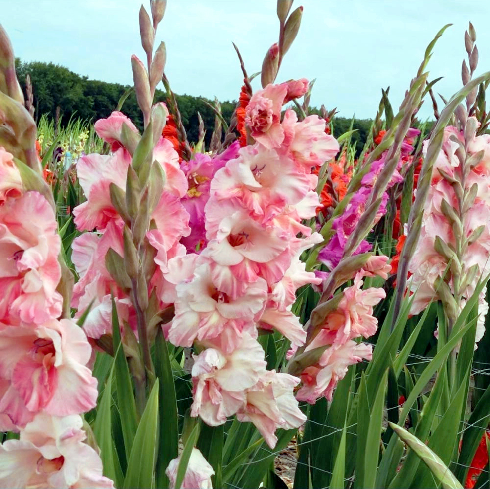 • Оформлення клумб: Гладіолуси прекрасно поєднуються з іншими квітами, такими як лілії, троянди, дельфініуми.