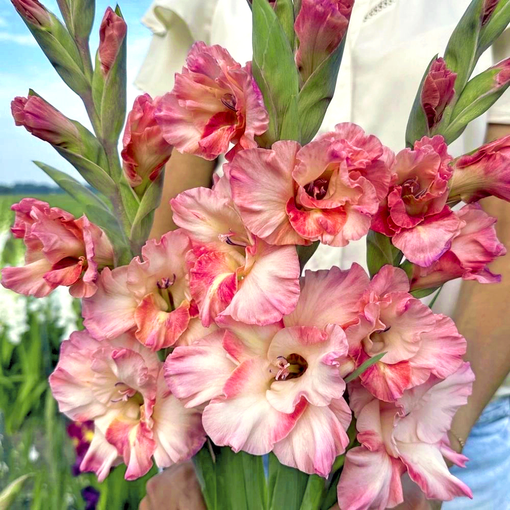 • Різноманітність кольорів: Палітра кольорів гладіолусів вражає своєю різноманітністю: від білого та рожевого до яскраво-червоного, фіолетового та навіть двоколірного.