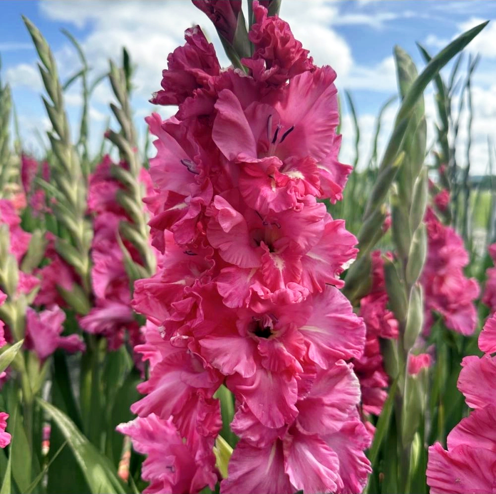 • Оформлення клумб: Гладіолуси прекрасно поєднуються з іншими квітами, такими як лілії, троянди, дельфініуми.