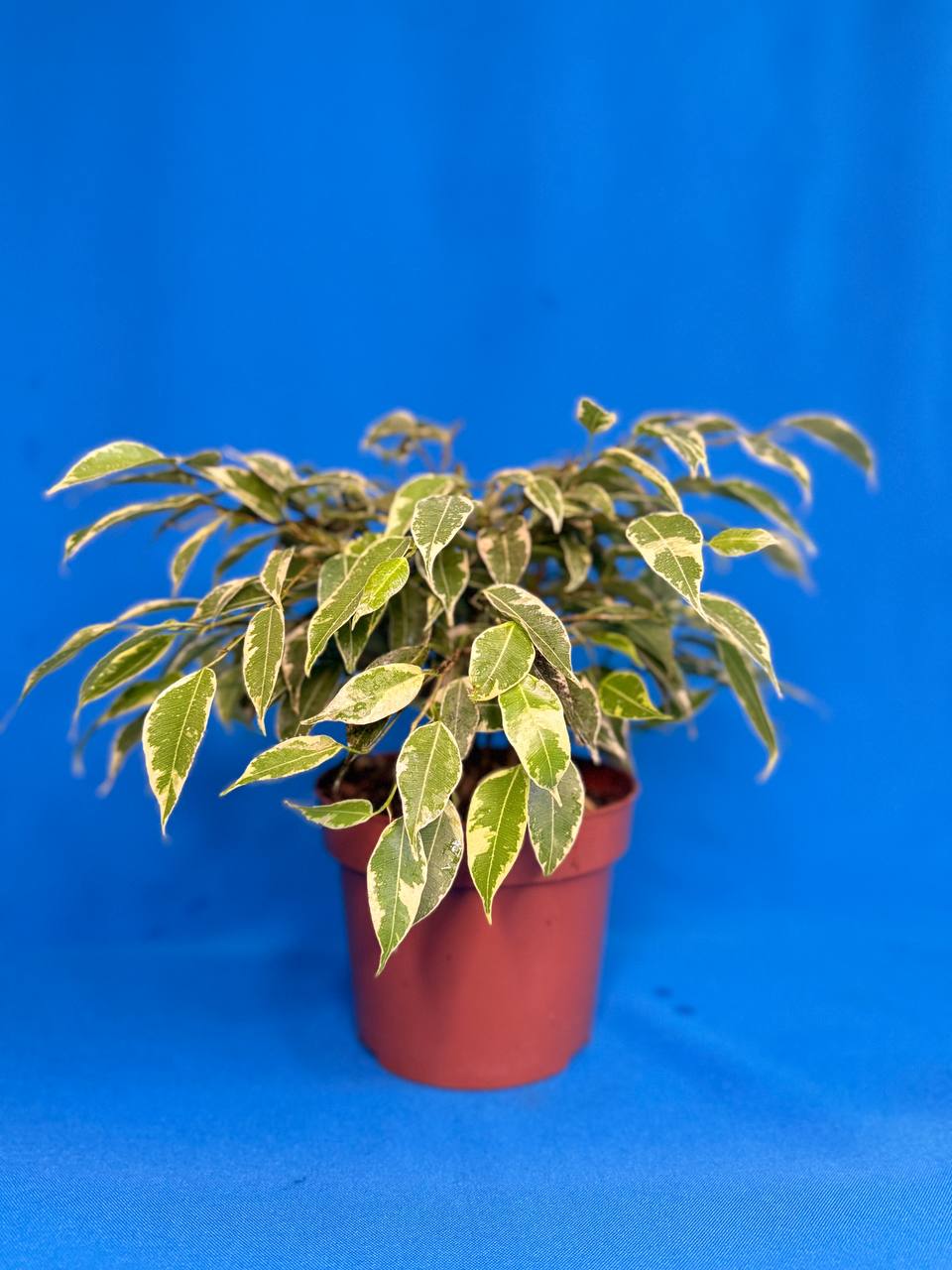 Фикус бенджамина Кинки — комнатное растение, принадлежащее семейству Тутовых. Представляет собой миниатюрную разновидность фикуса бенджамина. Отличается небольшими размерами, а также оригинальной расцветкой листьев. Селекционер не оформил патент на сорт, поэтому его имя, а также год и место получения культивара не известны. Растение имеет одревесневший стебель, компактное, вырастает в высоту около 40 сантиметров. Хорошо поддается обрезке, что позволяет сформировать практически любую форму — Кроне можно придать вид шара, конуса или же зонтика. Заниматься этим лучше весной, когда цветок быстро растет. Именно за свою декоративность сорт и получил широкую популярность. Можно и вовсе посадить сразу несколько маленьких деревьев в один достаточно просторный горшок, сплетя стволы между собой. Тогда, по мере роста, они превратятся в эффективное и необычное растение. Подходит для выращивания в технике бонсай. Темпы роста умеренные. Ветви у фикуса Кинки спадающие. Листья простые, очередные, продолговато-овальной формы с заостренной и чуть оттянутой вниз вершиной, узкие, достигают до 4-5 сантиметров в длину и окло 2 сантиметров в ширину, гладкие, тонко кожистые, образуются в одной плоскости, листовая пластинка прямая, края ровные. Молодые листики окрашены в зеленые цвет с салатовой окантовкой, взрослые – зеленые с неравномерными белыми и кремовыми полями. При обильном освещении светлые участки могут доходить до центра. Жилкование перистое, центральная жилка слабо выражена, светло-зеленого цвета. Черешки длиной 1 сантиметр, междоузлия – 1,5-2 сантиметра в длину (в 2-3 раза короче, чем у исходного вида), что и дает компактную и плотную крону. Это растение прибыло на отечественные просторы с тропических и субтропических лесов Индии, Китая и Юго-Восточной Азии, что и обусловило определенные требования к условиям его содержания. Идеальные условия — температура не менее 20 °С. Также важно определить месторасположение. Оно должно находиться на небольшом возвышении, так как сквозняки способны очень быстро погубить цветок — сначала он сбросит все листья, после чего окончательно увянет. Обеспечив достаточное количество света, нужно уберечь растение от воздействия прямых солнечных лучей. Любые перестановки – большой стресс, который потребует дальнейшего длительного периода восстановления. Выберите сразу постоянное место для него. Фикус Кинки — растение, которое хорошо растет практически в любых условиях, необходимо лишь защитить его от сквозняка и избытка света. И тогда его насыщенный зеленый цвет будет радовать владельцев еще не один год. Создать фикусу Кинки условия для комфортного роста под силу даже начинающему цветоводу. Достаточно следовать простым правилам, о которых было рассказано выше. А если подойти к выращиванию фикуса творчески и придать ему необычный вид, тогда он станет настоящим украшением вашего дома и всеобщим любимцем.