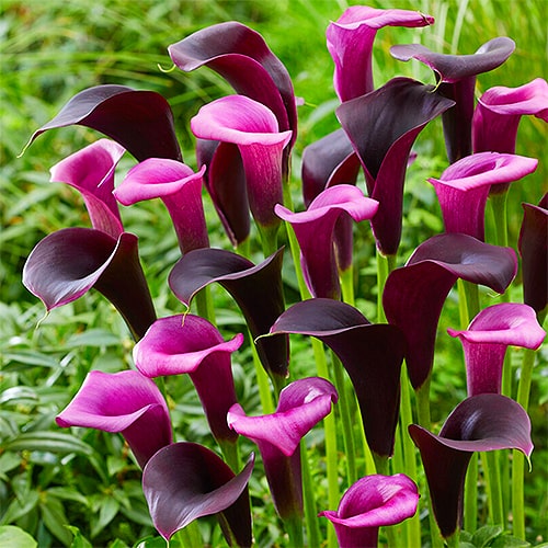 Контрастные посадки: Bullit выглядит непревзойденно рядом с белой каллой (Virgin Art) или светло-желтыми сортами. Это создает классический черно-белый контраст в саду.