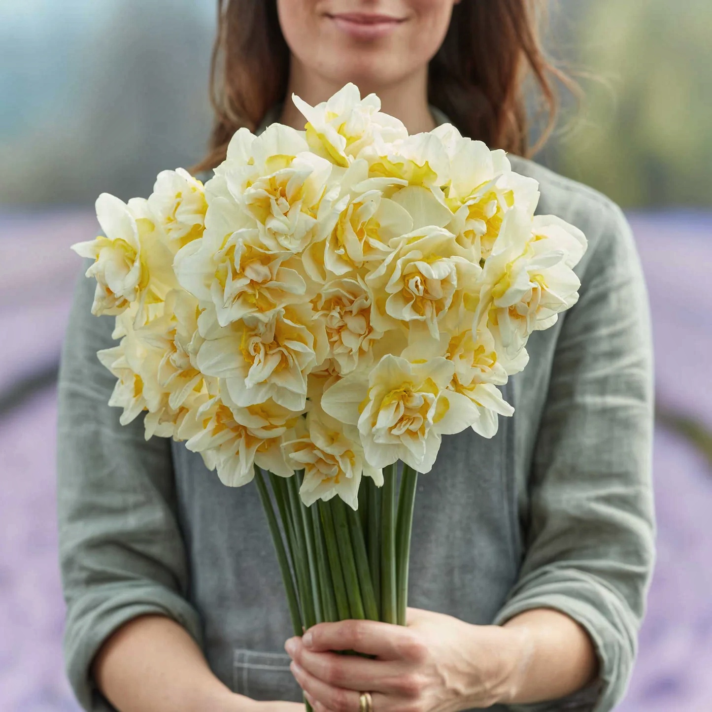 Красивий нарцис. Зацвітає одним із перших і довго тішить око своєю красою. Аромат ніжний та тонкий. Добре виглядає на клумбі з тюльпанами.