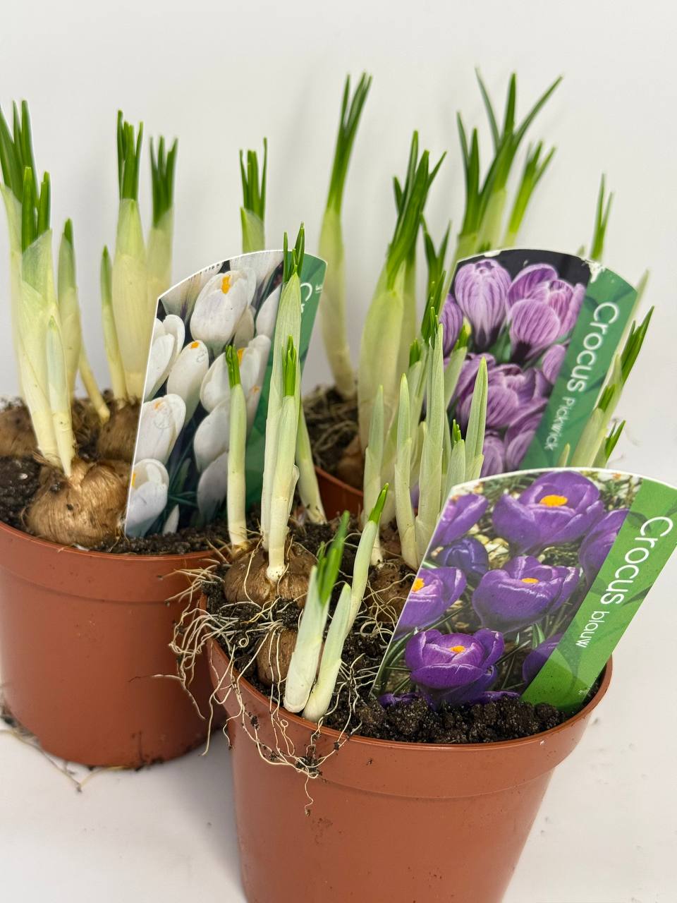 Смесь крупноцветковых крокусов в горшке