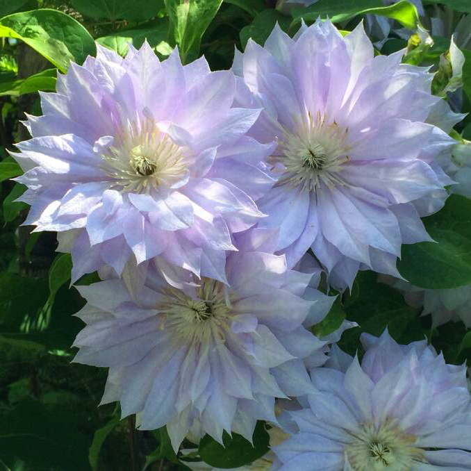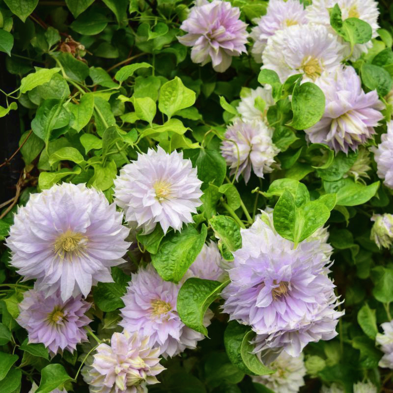 После своего пастельного цвета этот клематис идеально смотрится на фоне темных стен или рядом с темно-зелеными хвойными растениями. Он является отличным партнером для роз насыщенных цветов (пурпурных или темно-розовых).