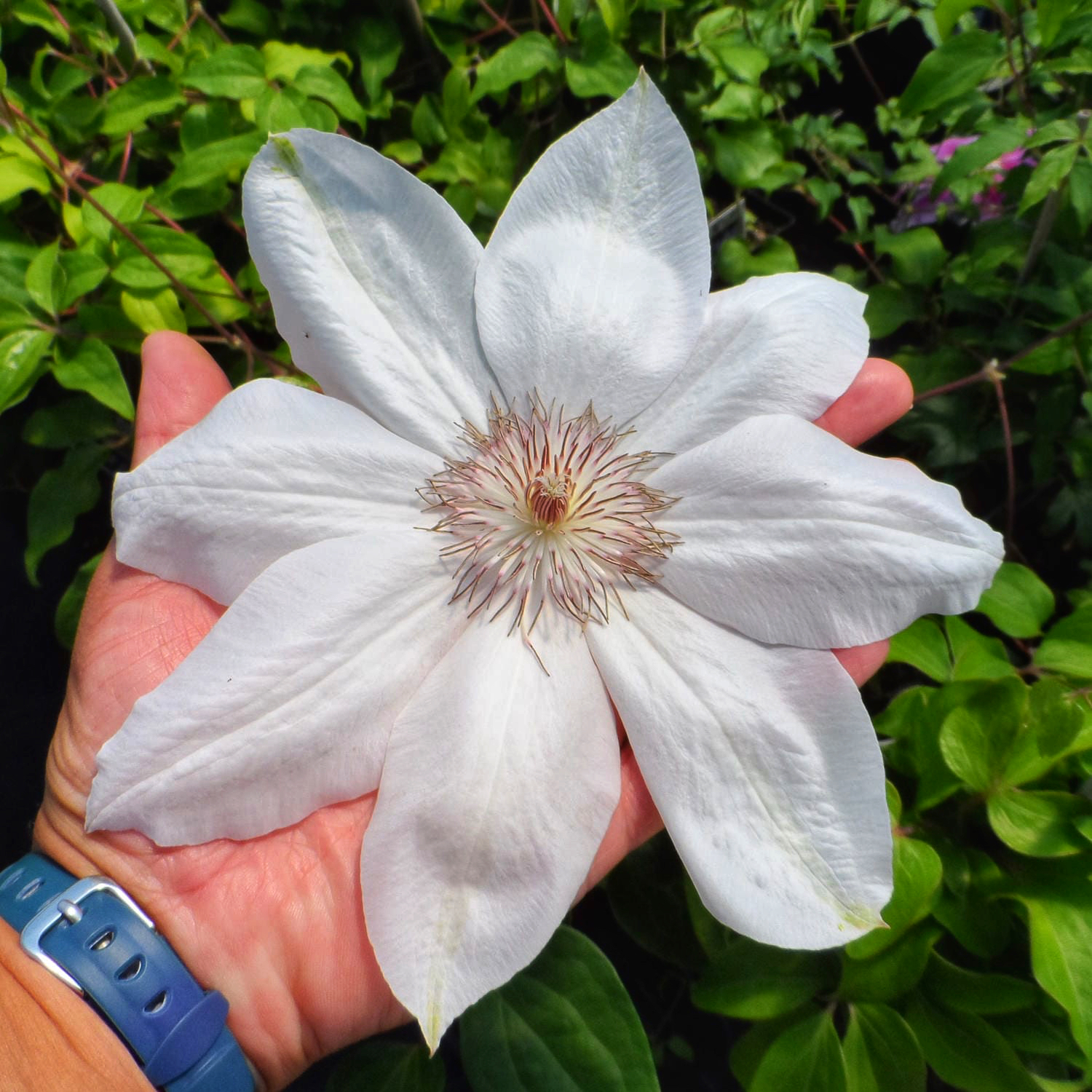 Соединение: Невероятно хорошо выглядит вместе с фиолетовыми (например, ) или темно-красными сортами клематисов.