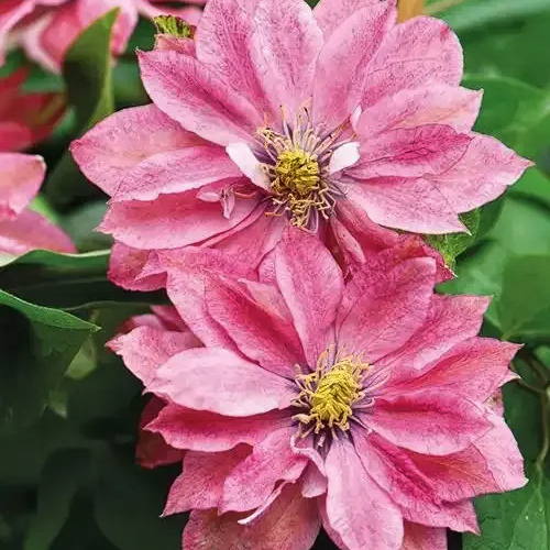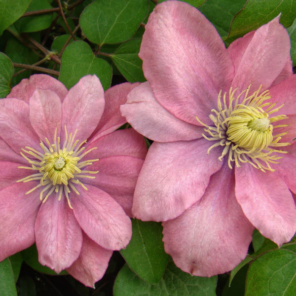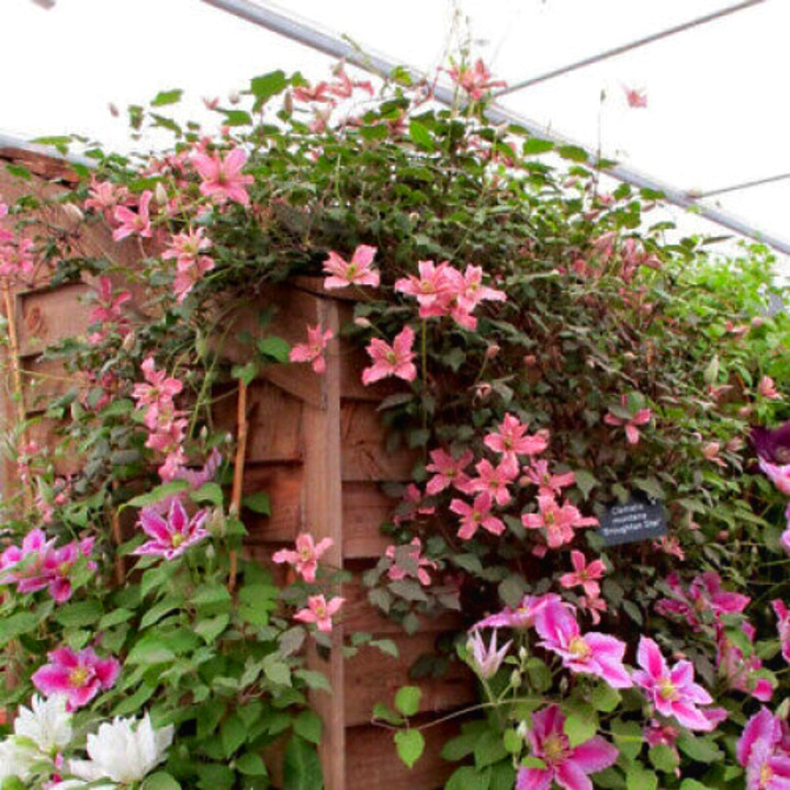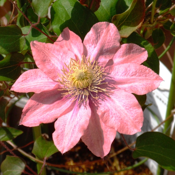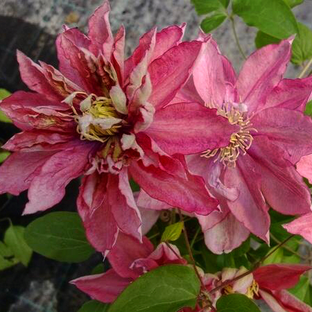 Раннецветущий японский сорт с редкой для клематисов, притягивающей внимание, лососево-розовой окраской цветков, с которой великолепно гармонируют ярко-желтые пыльники. Взрослое растение достигает около 2 м высоты. Цветки почти округлые, средние по размеру, диаметром 8-12 см, полумахровые, яркого лососевого цвета, складываются из 8 чашелистиков, но в весенних цветках, на старых побегах их может быть значительно больше. Цветок со временем немного выгорает и его цвет становится бледно-розовым. Обильно цветет с мая по июнь, при повторном цветении в августе-сентябре также наблюдается полумахровость некоторых цветков. Используется для выращивания у решеток, колышков и других садовых опор. Может карабкаться по натуральным опорам, например лиственным либо хвойным кустарникам, не требующим обрезки. Любит хорошо освещенные места. Особенно красиво выглядит на темном фоне. Пригоден для выращивания в контейнерах.
