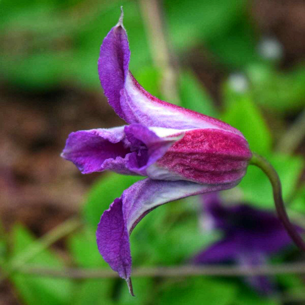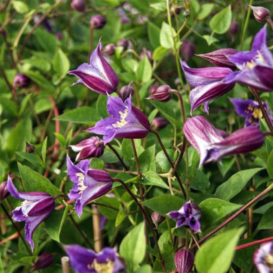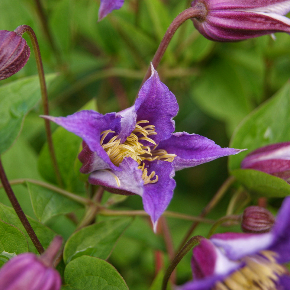 Сорт Prince William кардинально отличается от классических крупноцветковых клематисов своей формой и окраской: