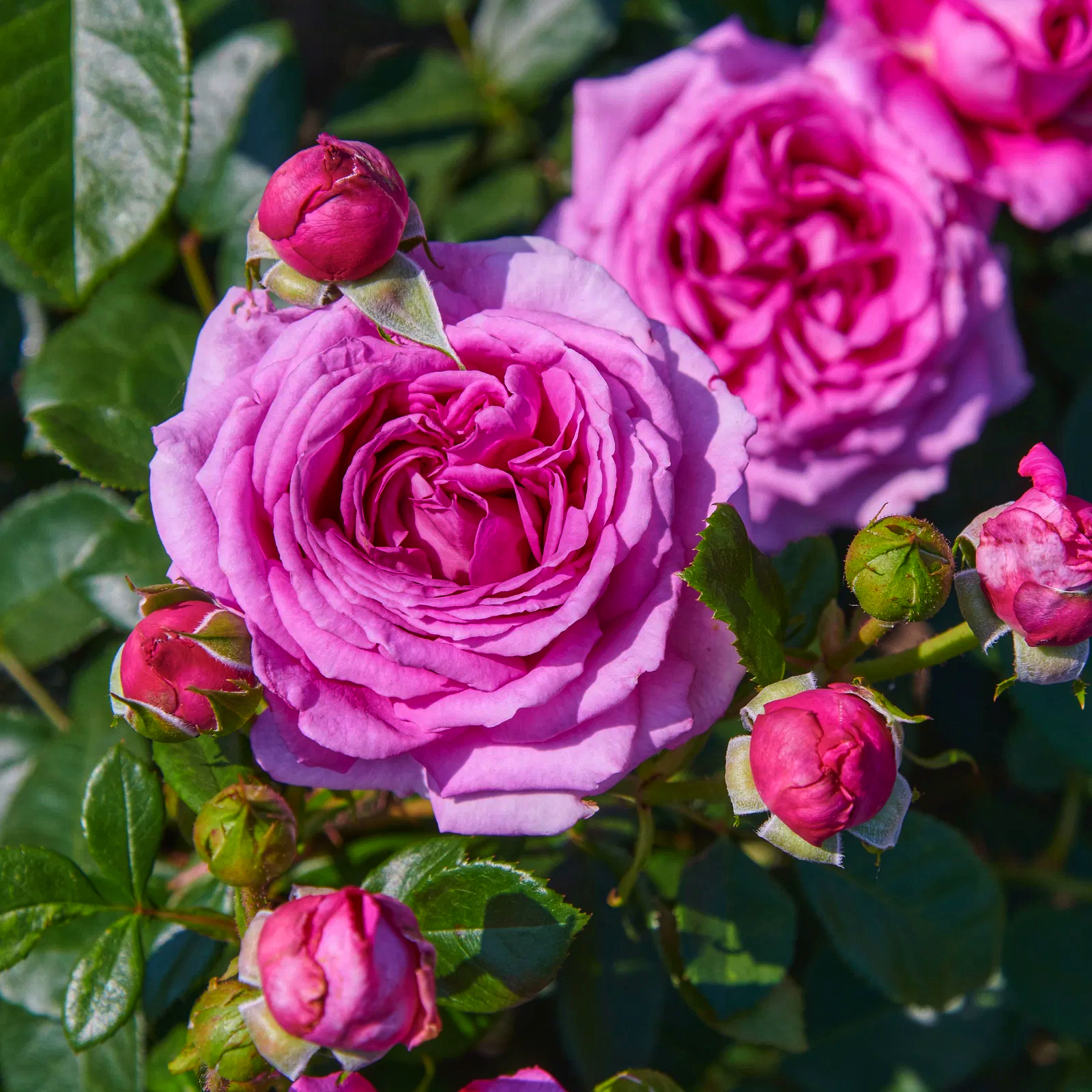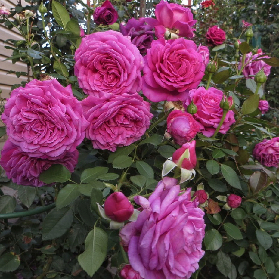 Цветовая гамма: Цвет очень глубокий и "сочный" — это смесь ярко-розового с сиреневым подтоном. В зависимости от погоды он может становиться более малиновым или приобретать пепельно-лиловый оттенок при отцветании.