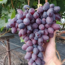 Ягода: Средняя или крупная, удлиненно-овальная, весом 5-7 г. Цвет кожицы варьируется от темно-розового до темно-фиолетового. Мякоть плотная, мясистая, с гармоничным, приятным вкусом. Кожица тонкая, при еде не ощущается. Класс бессемянности II (могут быть небольшие, мягкие рудименты).