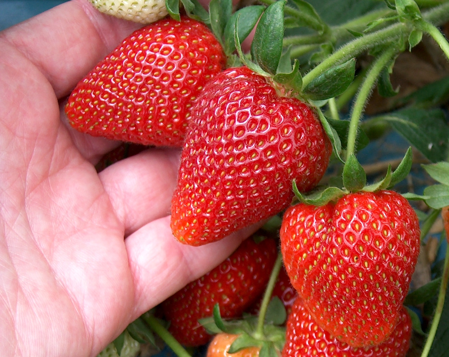 Ягоды у клубники Ауджи удлиненно-конусовидной формы, крупноплодные и равномерные (средний вес 30-35 г, первинки – до 40 г), не теряют формы к концу сезона. Поверхность глянцевая, гладкая, усыпана ровными семянками, окрашенная в насыщенный красный или вишневый цвет, с блеском, что искрится на солнце, маня к прикосновению. Мякоть нежная, умеренно сочная. Во вкусе присутствует сбалансированная сладость (4-4,4 балла) с характерной клубничной ноткой, легкой кислинкой и терпким послевкусием, раскрывающимся мускусными оттенками. Клубника не трескается, держится на плодоножке крепко. Урожайность клубники Ауджи — ее гордость и составляет до 1-1,5 кг с куста, 8-10 кг с м², с 90% товарных ягод, стабильных по размеру. Ягоды хранятся 4–5 дней в холодильнике (2–3°C), не мнутся – идеал для рынка.