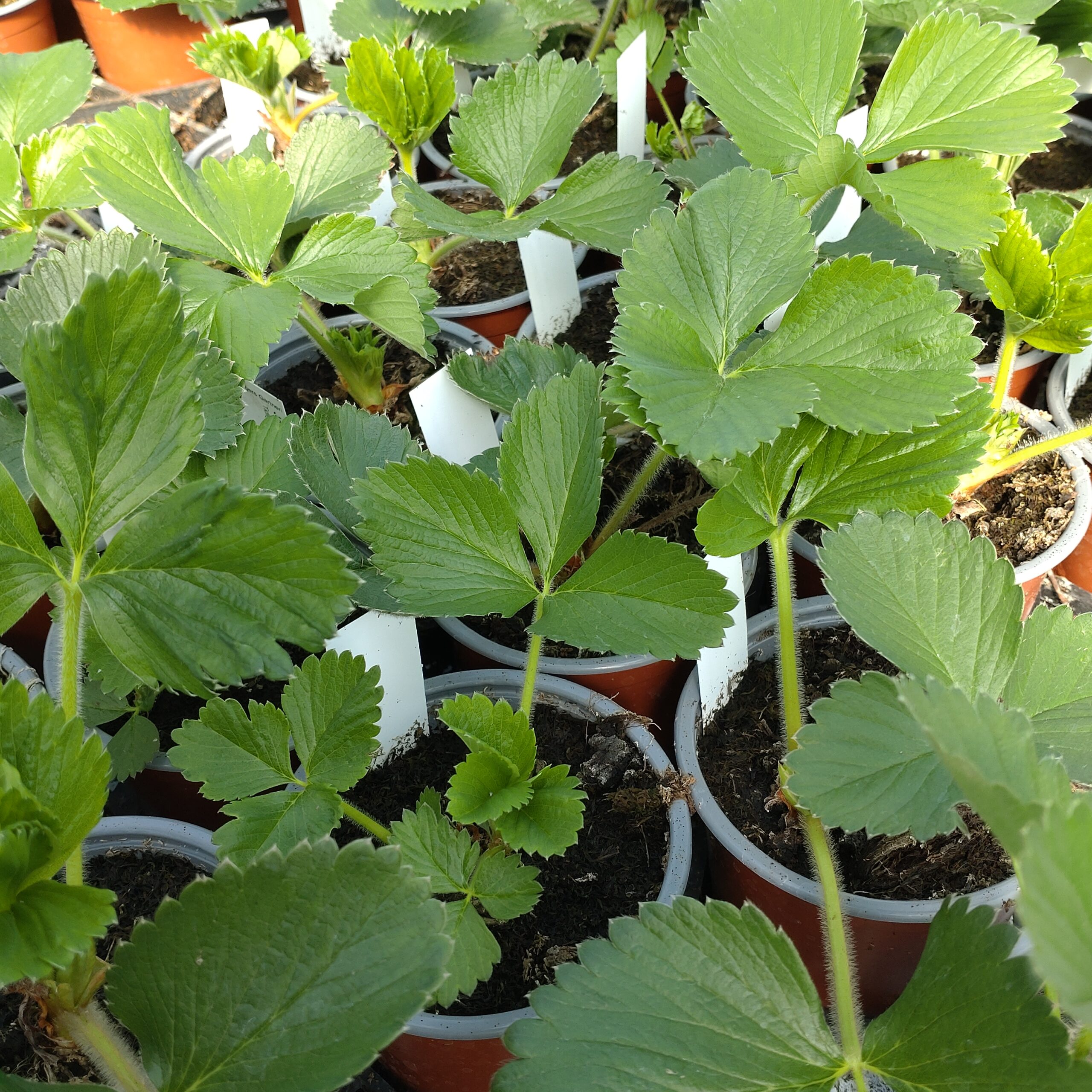 Кусты Глориэль среднерослые (20-30 см в высоту и 30-40 см в ширину), раскидистые, с густой листвой, что создает естественный щит от поздних заморозков. Листья ярко-зеленые, крупные, с легким блеском, словно покрытые утренней росой, устойчивы к ветру и жаре. Усы образуются умеренно – 4-6 на растение. Цветоносы крепкие, толстые, длиной 10-15 см, прячутся под листвой, защищая цветы от весенних заморозков до -3..-5°C. В апреле–мае кусты расцветают белыми звездочками соцветий (по 6–8 цветков в грозди).