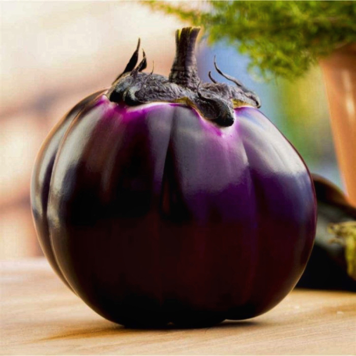 Сорт среднеспелый, высокоурожайный. Формирует куст полураскидистый высотой 50-60 см. Плоды округлые, длиной 7-13 см, диаметром 10-15 см, светло-фиолетовой окраски, глянцевые, массой от 300 до 700 г. Мякоть очень плотная, кремовая без горечи. Имеет высокие вкусовые качества, диетические и лечебные свойствами. Выращивать лучше через рассаду. Используют для переработки и домашней кулинарии.