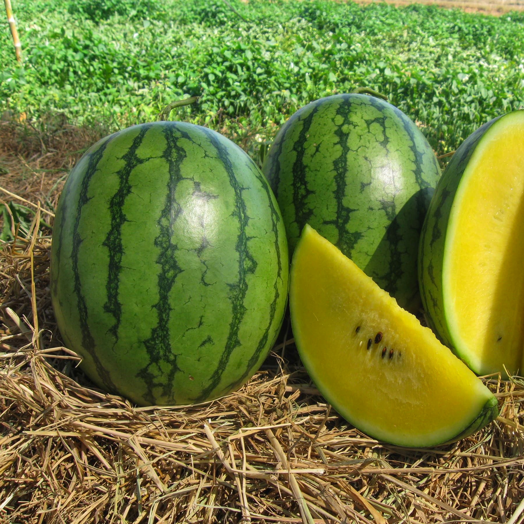 Ультраранний арбуз типа Джубили с желтым мякушем.