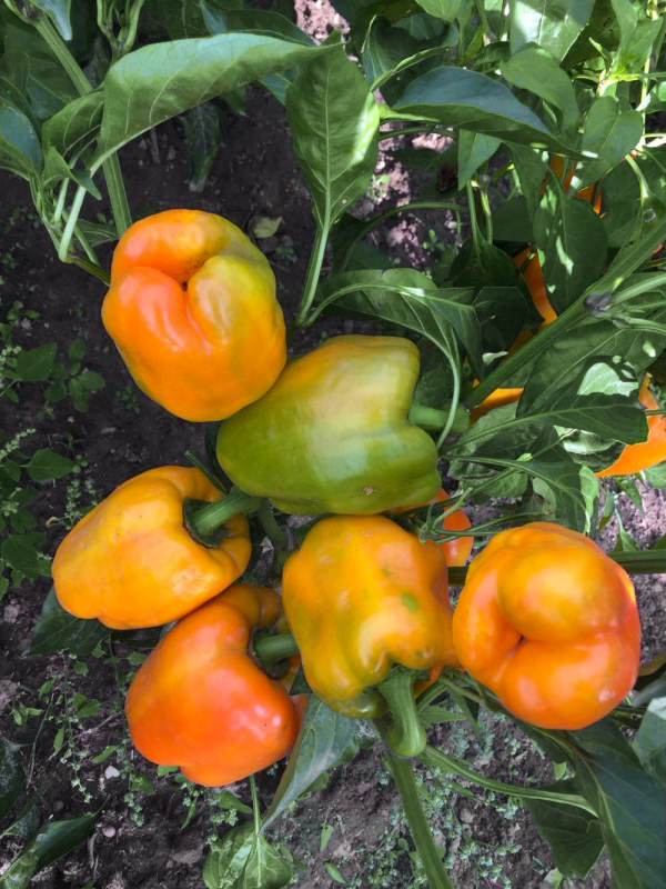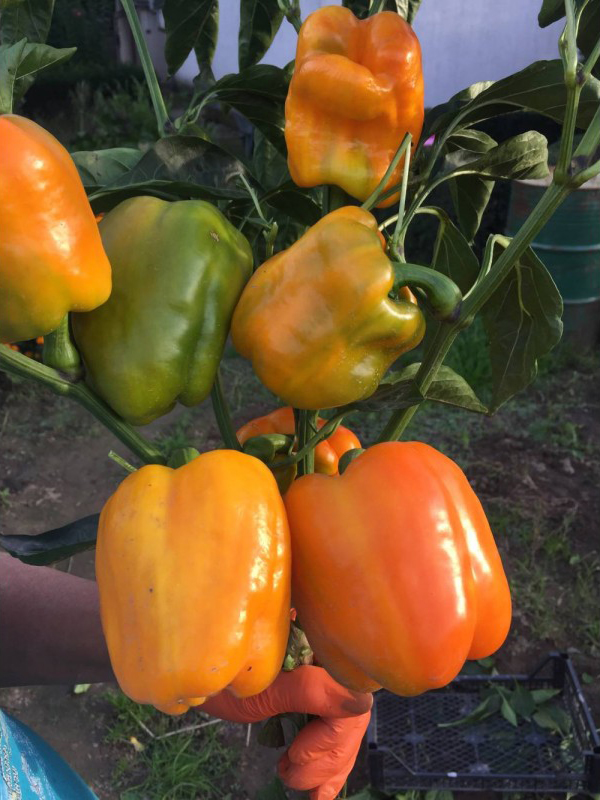 Перец сладкий Бугай — новый ранний гибрид с крупными, яркими плодами и высокой товарностью. Вегетационный период составляет 115–125 дней от лестницы до технической спелости. Растение крепкое и мощное, высотой 50–70 см, с отличным листовым покровом, защищающим плоды от солнечных ожогов. Плоды кубовидной формы, очень крупные, весом 250–500 г, сначала ярко-желтые, а при полной зрелости приобретают насыщенный оранжевый цвет. Мясистые стенки толщиной до 10 мм придают плодам нежный сладко-пряный вкус и аромат. Сорт Бугай ценится за отличную лежкость плодов, высокую товарность и универсальное использование в кулинарии. Он идеально подходит для свежего потребления, салатов, консервирования, заморозки и фарширования, а также для домашней кулинарной переработки, сохраняя сочность и вкусовые качества.
