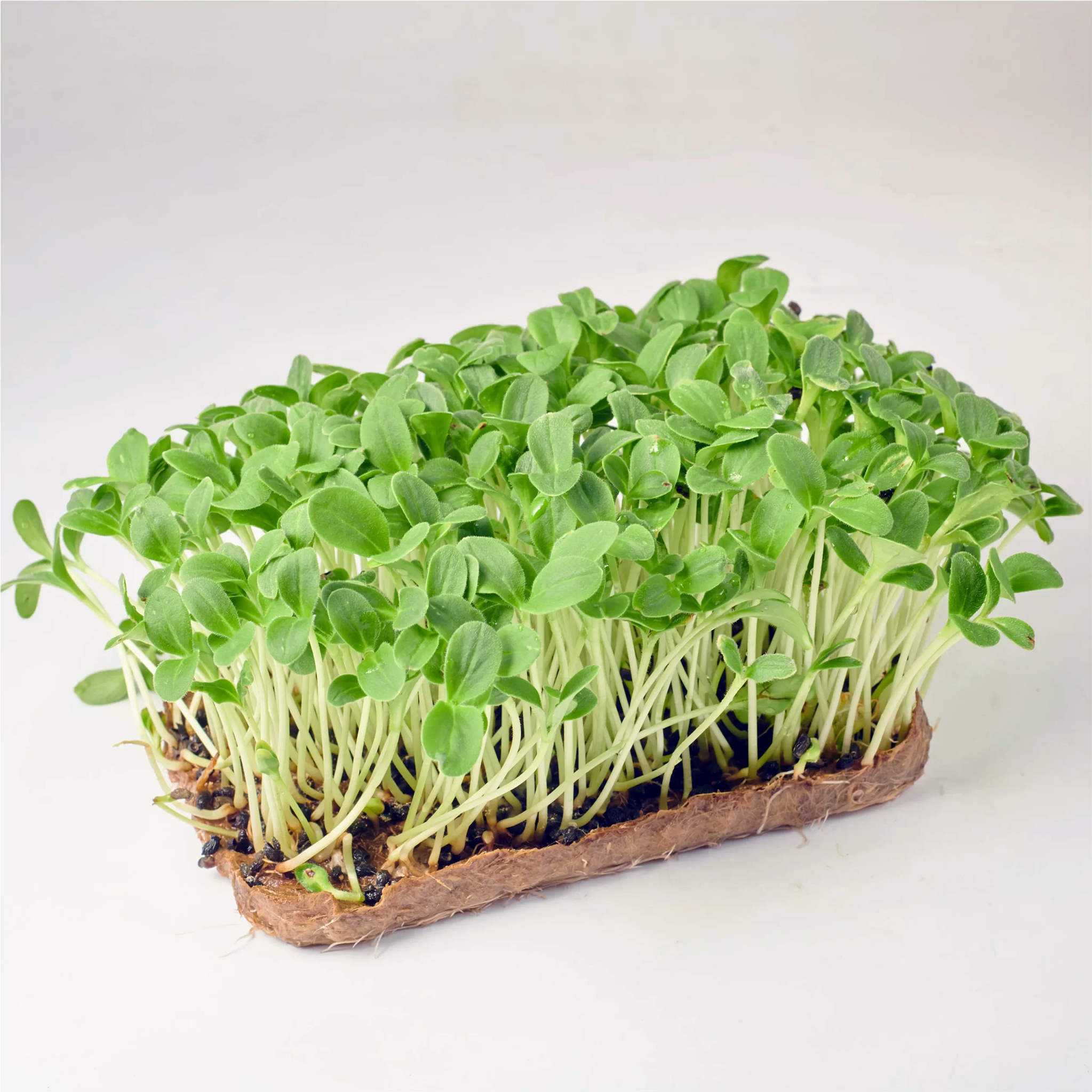 Возьмите неглубокий лоток с дренажными отверстиями. Заполните качественным рыхлым грунтом или увлажненным кокосовым/джутовым ковриком (слой 3-5 см). Густо распределите семена по поверхности (почти сплошь, 2-3 г на 10×10 см), слегка прижмите и присыпьте тонким слоем грунта (0,5-1 см) или просто увлажните. - Прорастание
