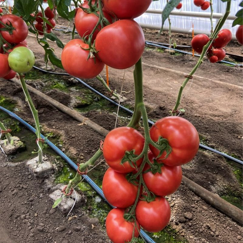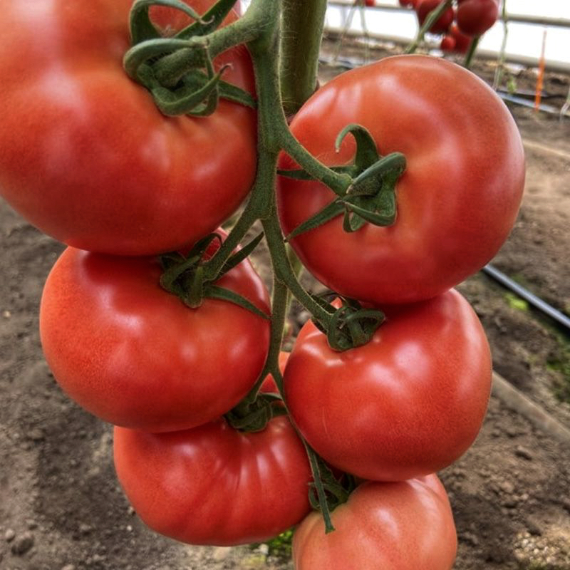 Плоды томата Наргиза F1 отличаются привлекательным внешним видом и высокими вкусовыми качествами. Они имеют округлую, идеально выровненную форму и насыщенный, ярко-розовый, блестящий цвет. Средняя масса плода составляет 200 – 250 граммов, при этом томаты на первых кистях могут быть больше, достигая более 300 граммов. Плоды очень плотные и мясистые, что является ключевым преимуществом. Важно, что они не подвержены растрескиванию и не имеют зеленого пятна у плодоножки. Благодаря высокой плотности, Наргиза F1 имеет отличную транспортабельность и хорошо сохраняет товарный вид после сбора, что делает его идеальным для продажи. Вкусовые качества традиционны для розовых помидоров — мякоть сочная и очень вкусная.