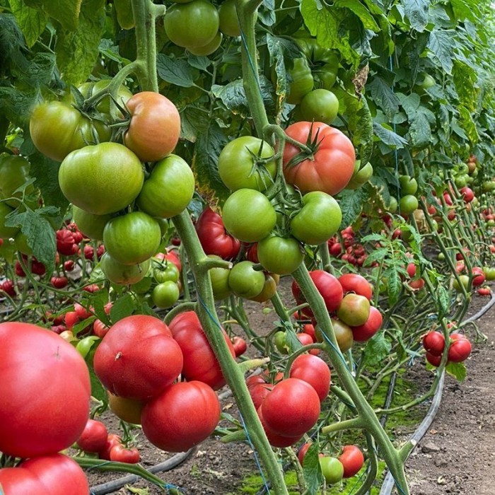 Томат Наргиза F1 относится к индетерминантному (высокорослому) типу, характеризующемуся неограниченным ростом. Она обладает мощной корневой системой и большой силой роста, что обеспечивает стабильное питание плодов. Куст имеет открытый габитус со средними междоузлиями. Гибрид демонстрирует отличную завязываемость плодов, сохраняющуюся даже при неблагоприятных или стрессовых условиях в течение всего периода вегетации.
