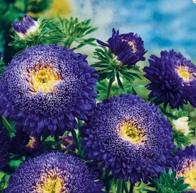 Астра Принцесса темно-синяя – шедевр мировой селекции. Куст очень декоративный, среднерослый или высокорослый, широкий, сильноветвистый, вырастает в высоту 60-70 сантиметров. Стебли вертикальные, крепкие, выровненные по высоте. Цветонесущие побеги сильно облиственные. Соцветия полусферической формы, густомахровые, поникающие, плотно набиты множеством лепестков, крупные, достигают в диаметре 10-12 сантиметров, окрашенные в глубокий темно-синий цвет с золотистым свечением в серединке. Широкие язычковые цветки этой астры окаймляют серединку в четыре ряда, ближе к краю соцветия – они удлиняются. Соцветия распускаются в конце июля или начале августа. Длительность обильного цветения астры продолжается около 2 месяцев. На одном растении может распуститься до 27 соцветий. Астра светолюбивое и сравнительно холодостойкое растение, предпочитает легкие и плодородные почвы, без свежевнесенных органических удобрений. Садовые астры, входящие в этот сортотип, выращивают для срезки, цветы необыкновенно долго стоят в букете. Астра Принцесса темно-синяя прекрасно смотрится в клумбах, миксбордерах, массовых посадках и больших контейнерах.