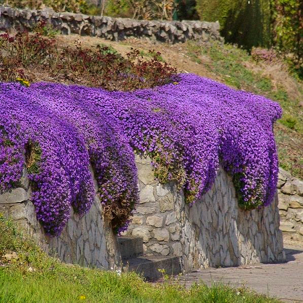 Обриета является одним из самых популярных почвопокровных растений для ранневесеннего цветения.