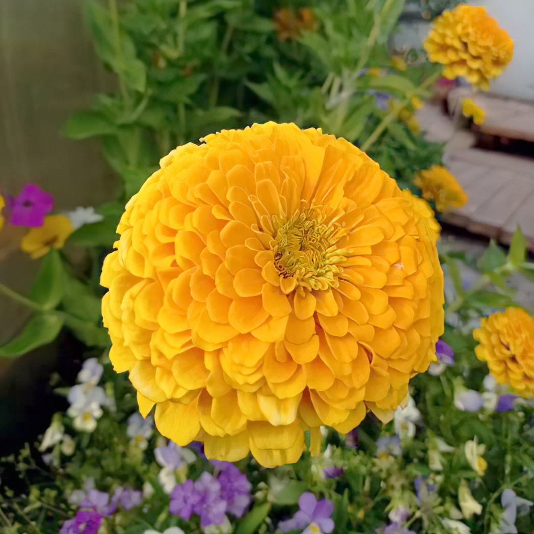 Цинния Канарейка — эффектный однолетний цветок, относящийся к виду цинния Изящная. Растение высокорослое, мощное, ветвистое, вырастает в высоту до 90 сантиметров. Формирует крупные махровые соцветия, достигающие до 15 сантиметров в диаметре. Язычковые цветки удлиненно-лопастной формы, расположеные черепитчато с чуть приподнятыми краями, окрашенные в лимонно-желтый цвет, трубчатые – более темного оттенка. Цветет с июля до заморозков. Регулярное удаление отцветших соцветий способствует более продолжительному цветению. Предпочитает солнечные, защищенные от ветров, теплые участки с плодородной, рыхлой почвой. При продолжительной засухе требуется полив. Поливать рекомендуется под корень. Растение плохо переносит холод и сырость. Цинния Канарейка используется для посадки в различные цветники, на клумбы, рабатки. Хорошо сочетается с подходящими по окраске цветков летниками (ноготки, бархатцы, мелкоцветковые хризантемы, вербена). Сорт отлично подходит для срезки. Однозначно станет великолепным украшением в вашем саду.